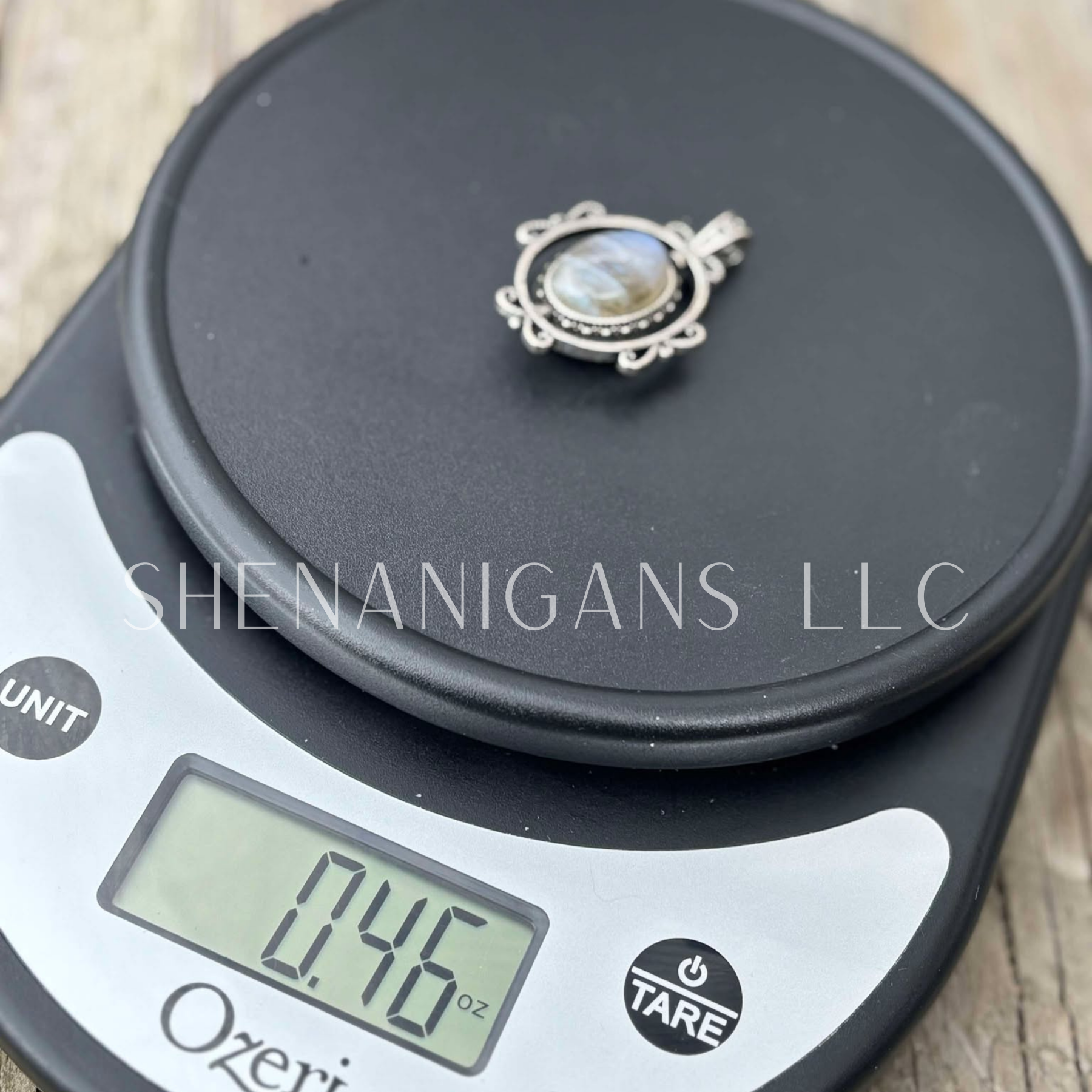 Antiqued Spinning Pendant - Blue/Green Flash Labradorite