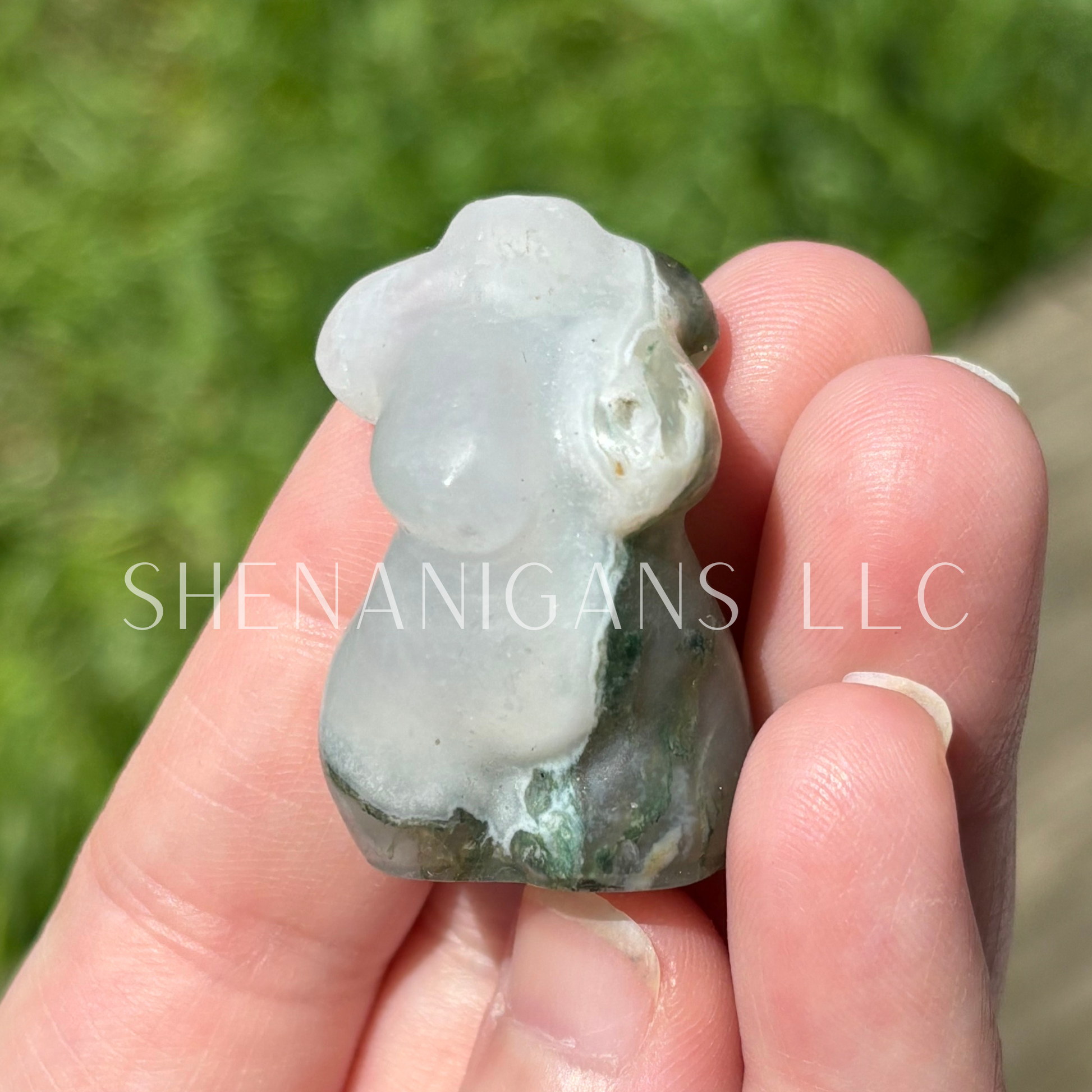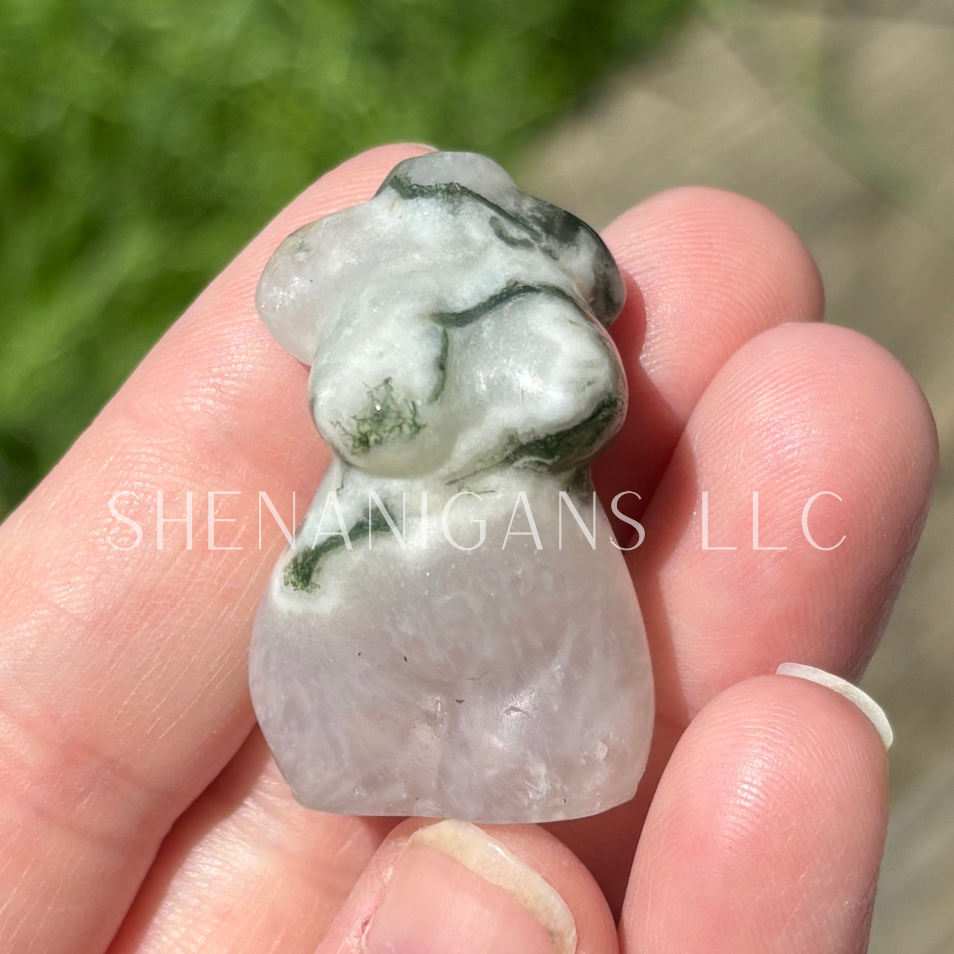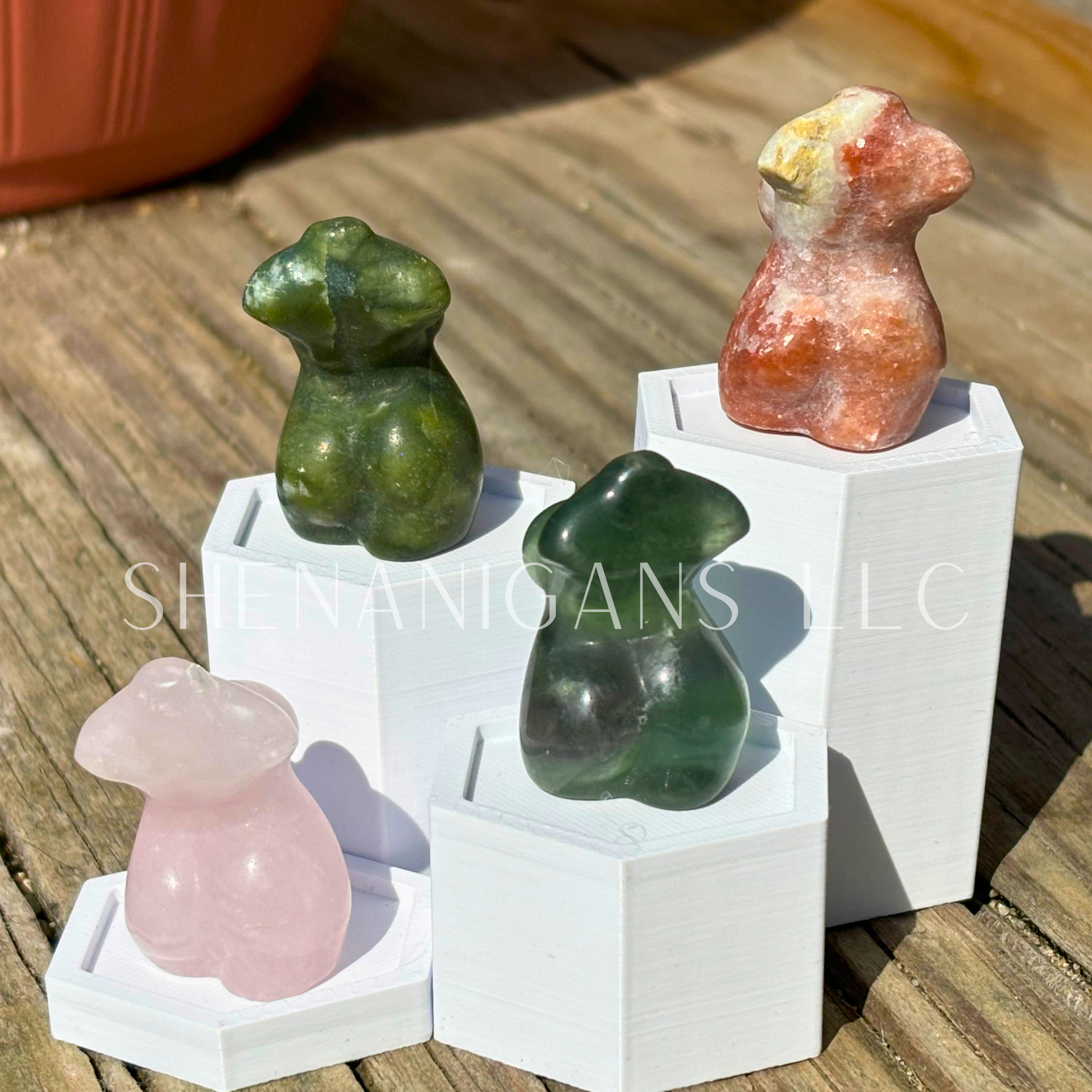 Please Note: These figurines are hand-carved from natural stone/crystal, and as such, may exhibit small chips, nicks, pits, or other surface variations. These are not flaws but rather a testament to the natural formation of the crystal and the hand-carving process, enhancing the distinctive character of each piece.