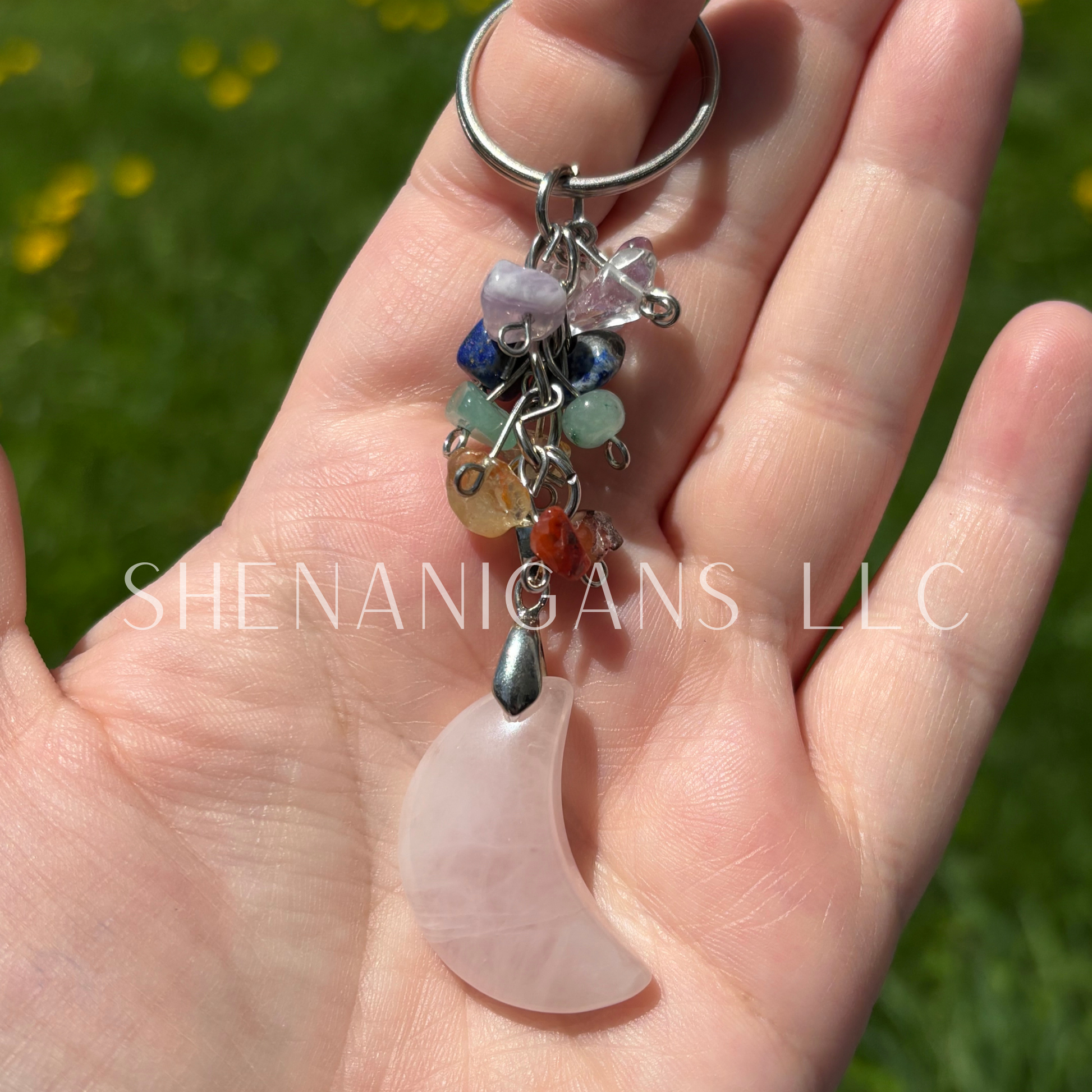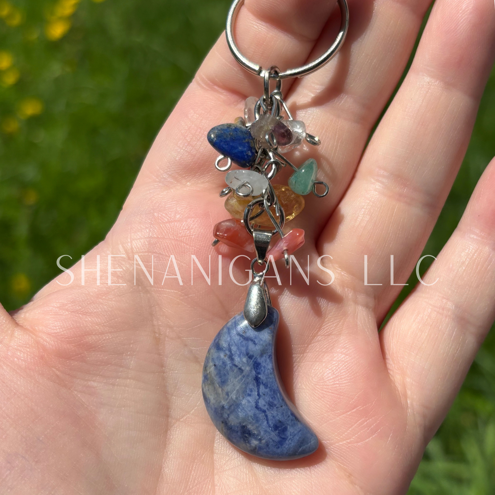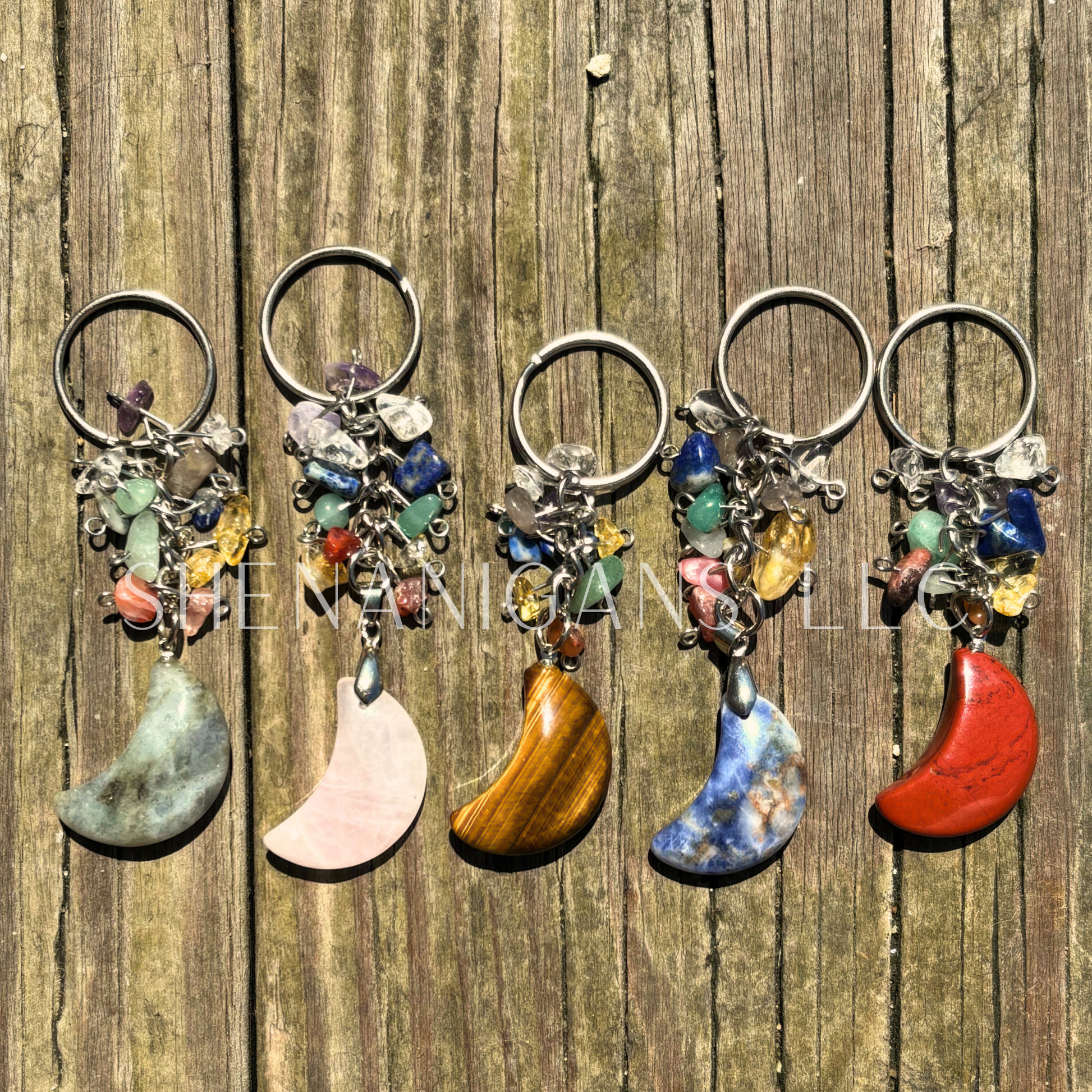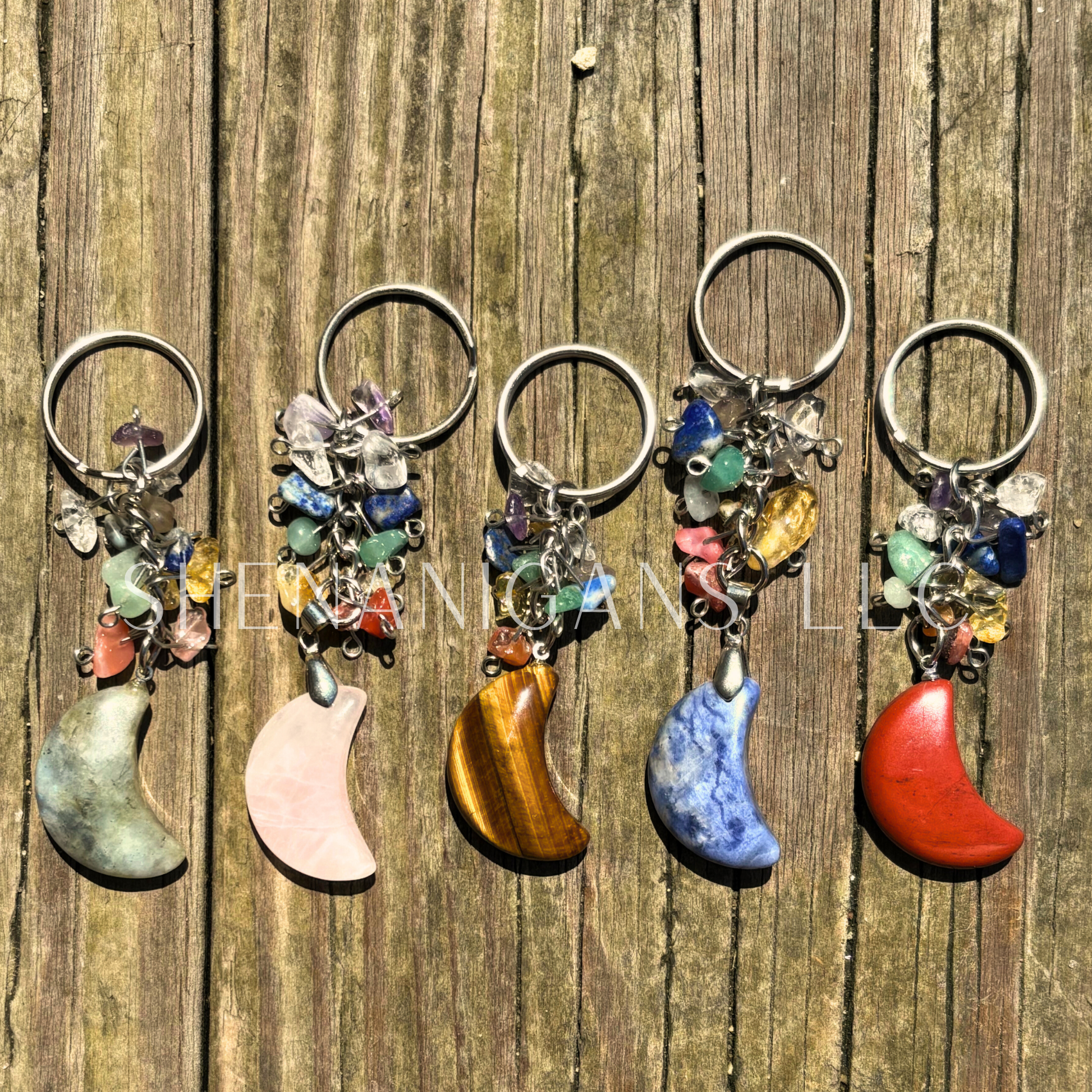 Crescent Moon Crystal Keychain – Celestial Gemstone Charm for Protection & Intention