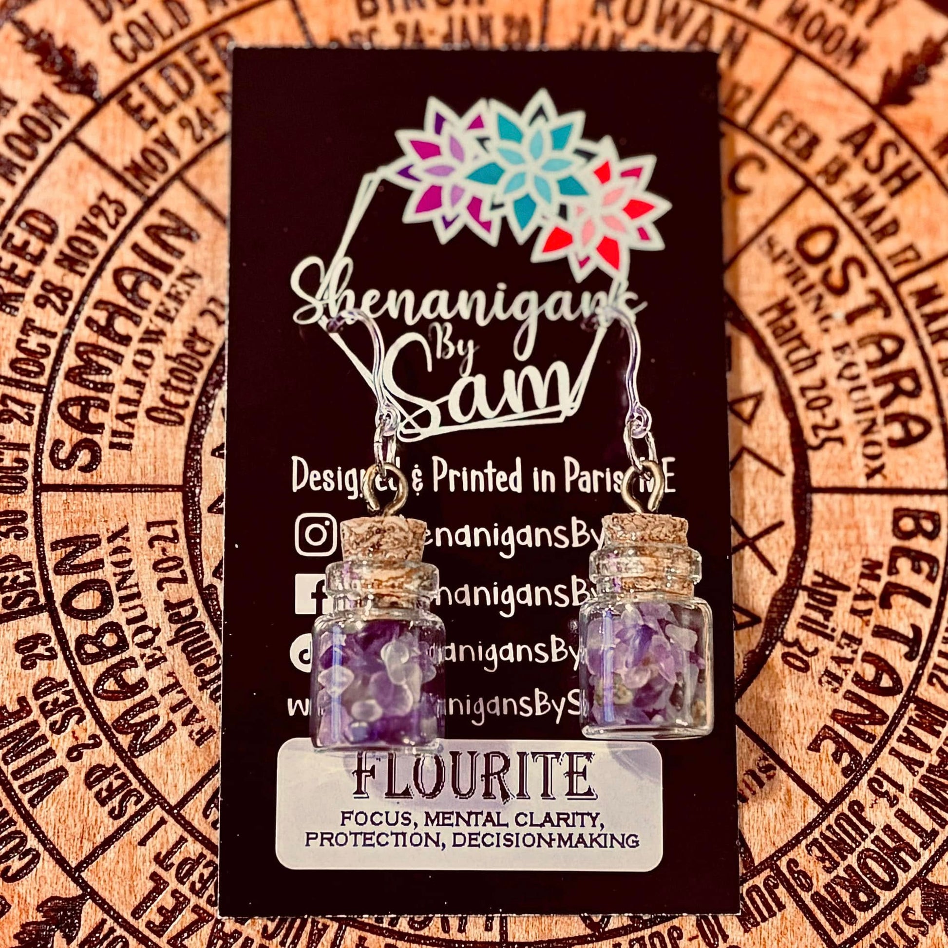These handcrafted crystal chip jar earrings are a unique blend of elegance and energy. Each earring features a miniature glass jar with a cork lid, filled with genuine crystal chips, carefully selected for their beauty and metaphysical properties.