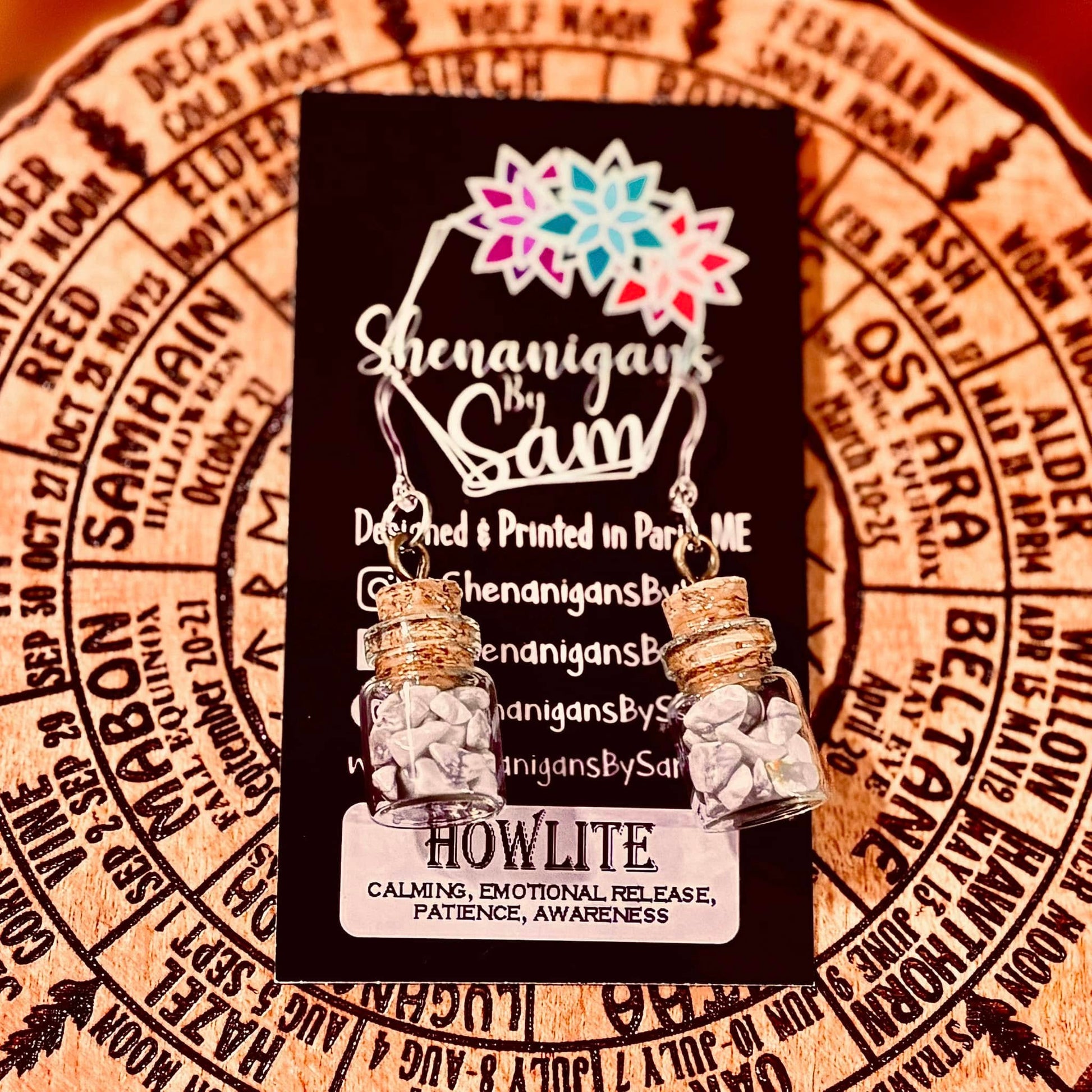 These handcrafted crystal chip jar earrings are a unique blend of elegance and energy. Each earring features a miniature glass jar with a cork lid, filled with genuine crystal chips, carefully selected for their beauty and metaphysical properties.