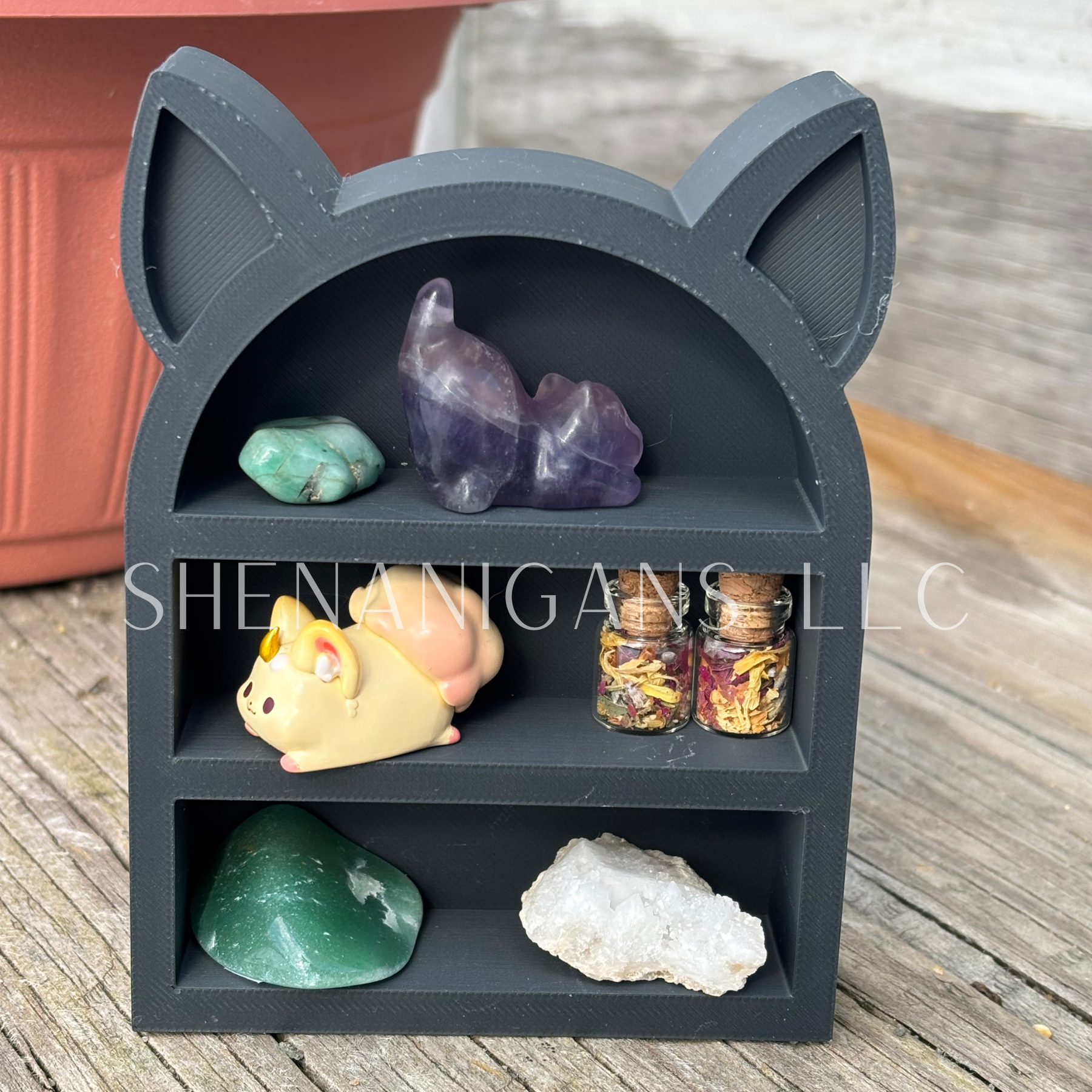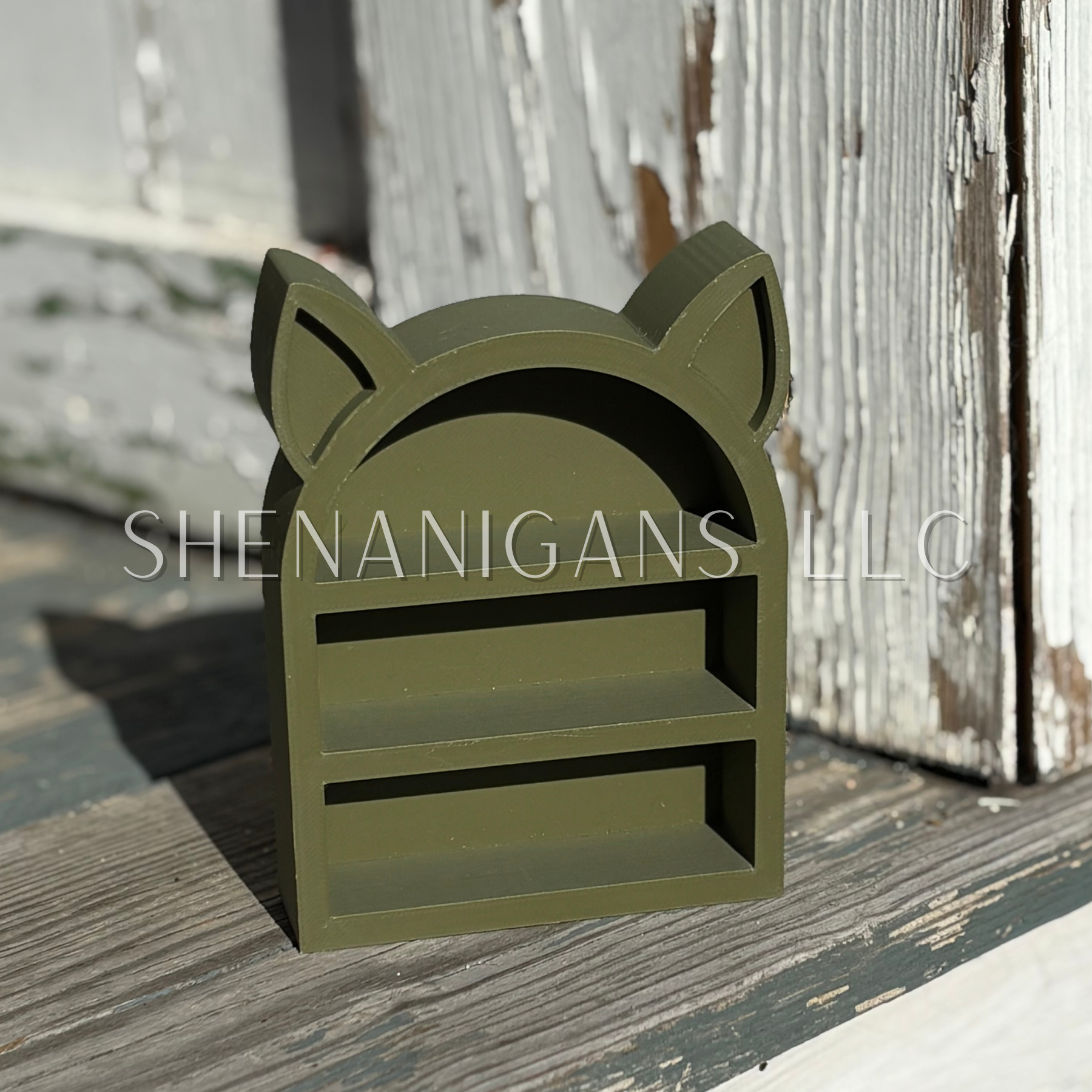 Curio Shelf Arch With Ears - 2 Shelf - Trinket, Desk, Crystal