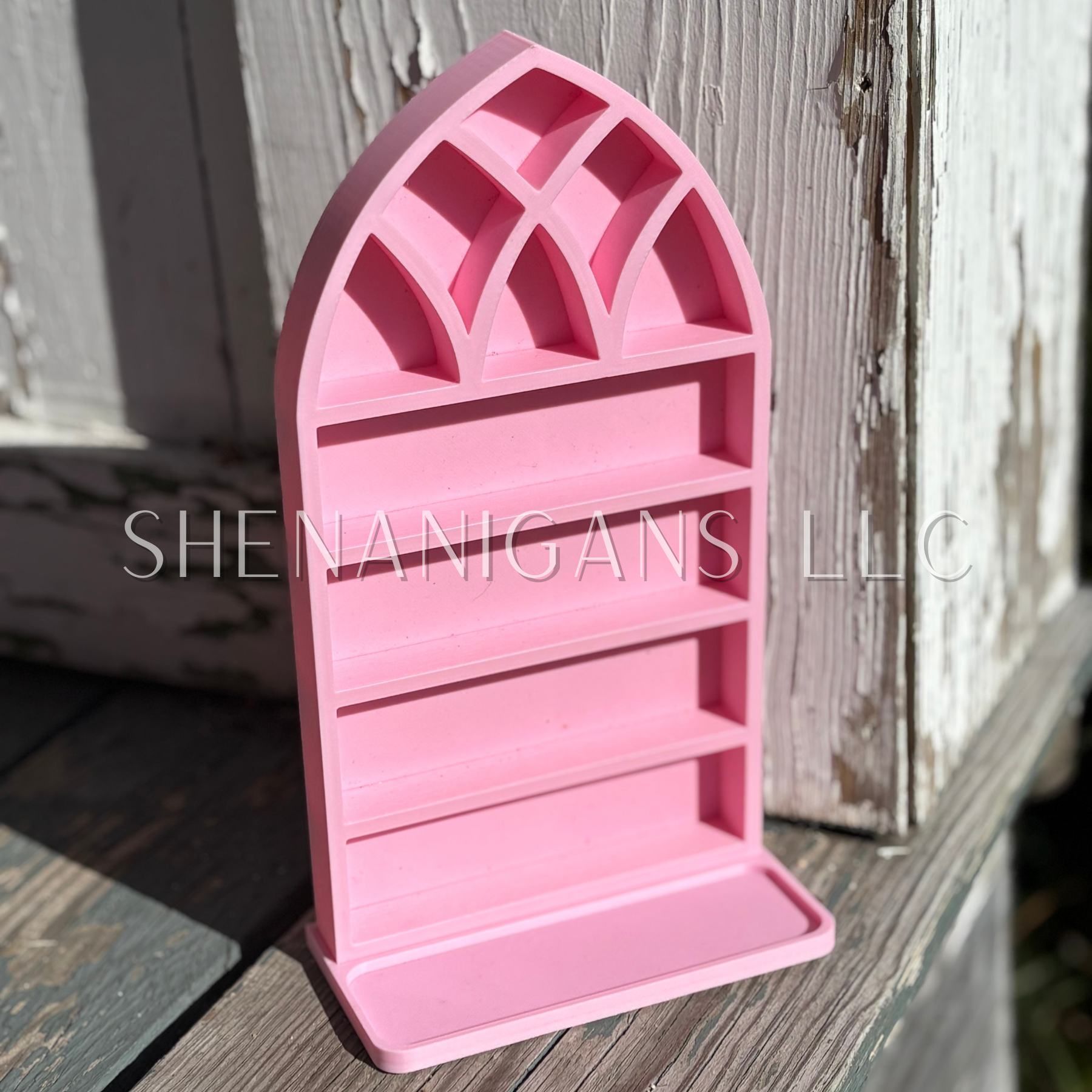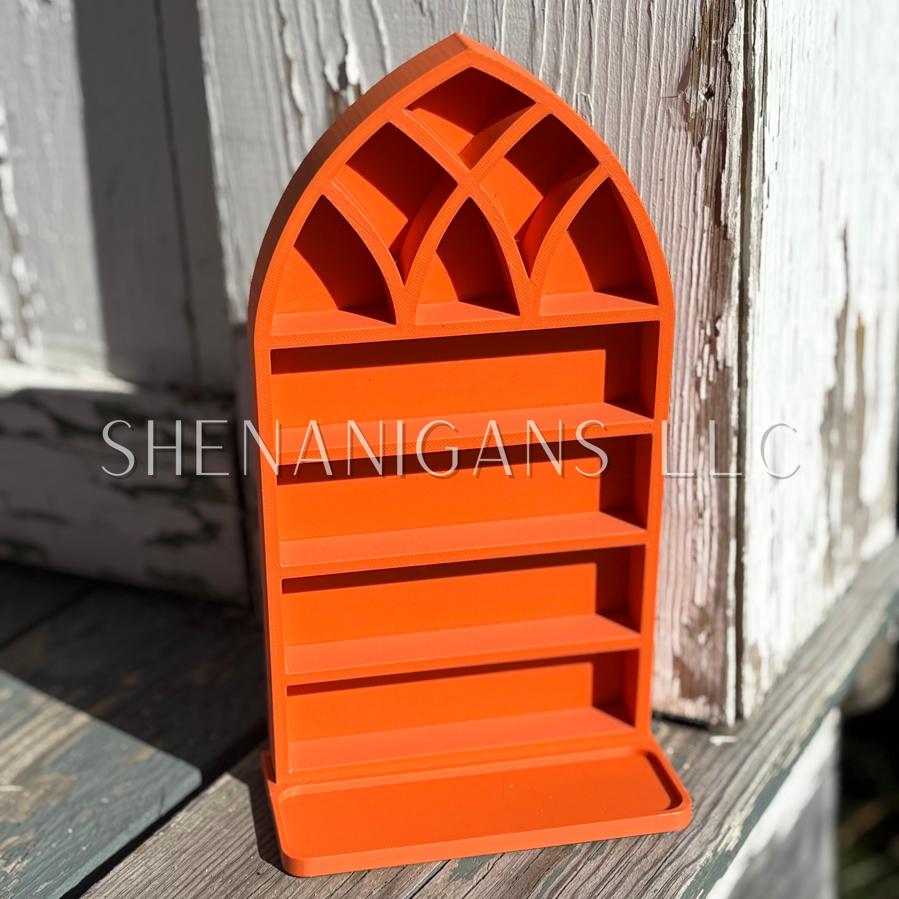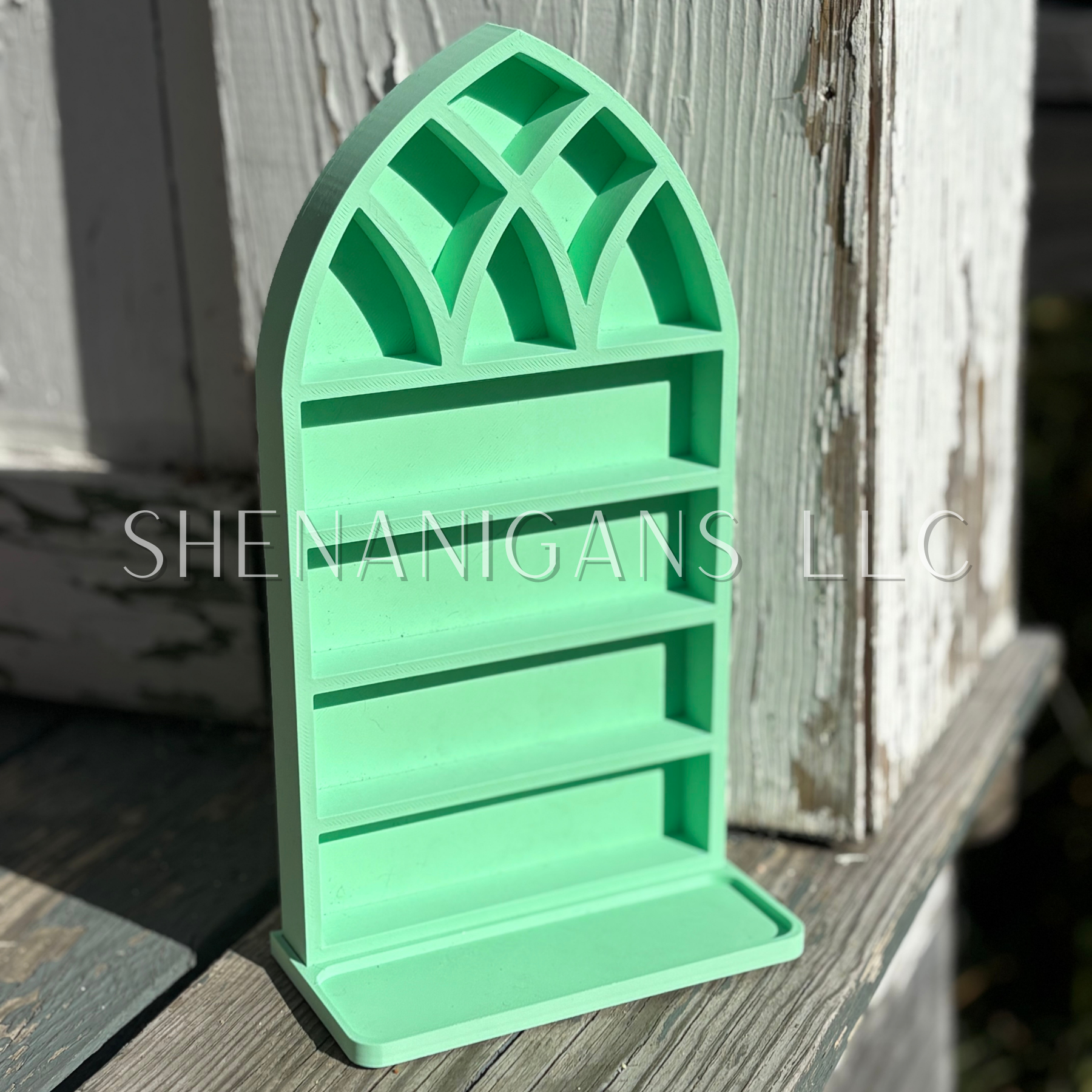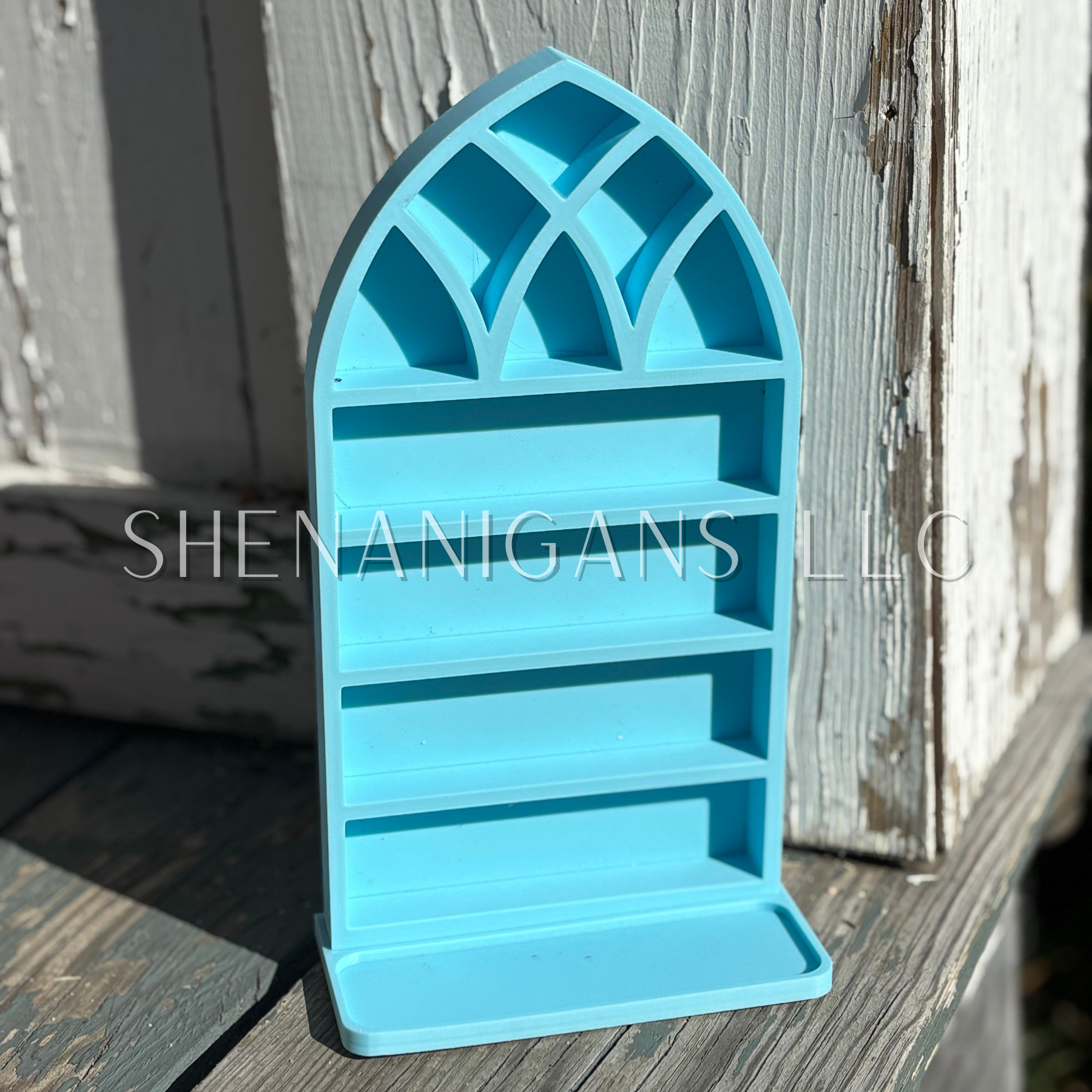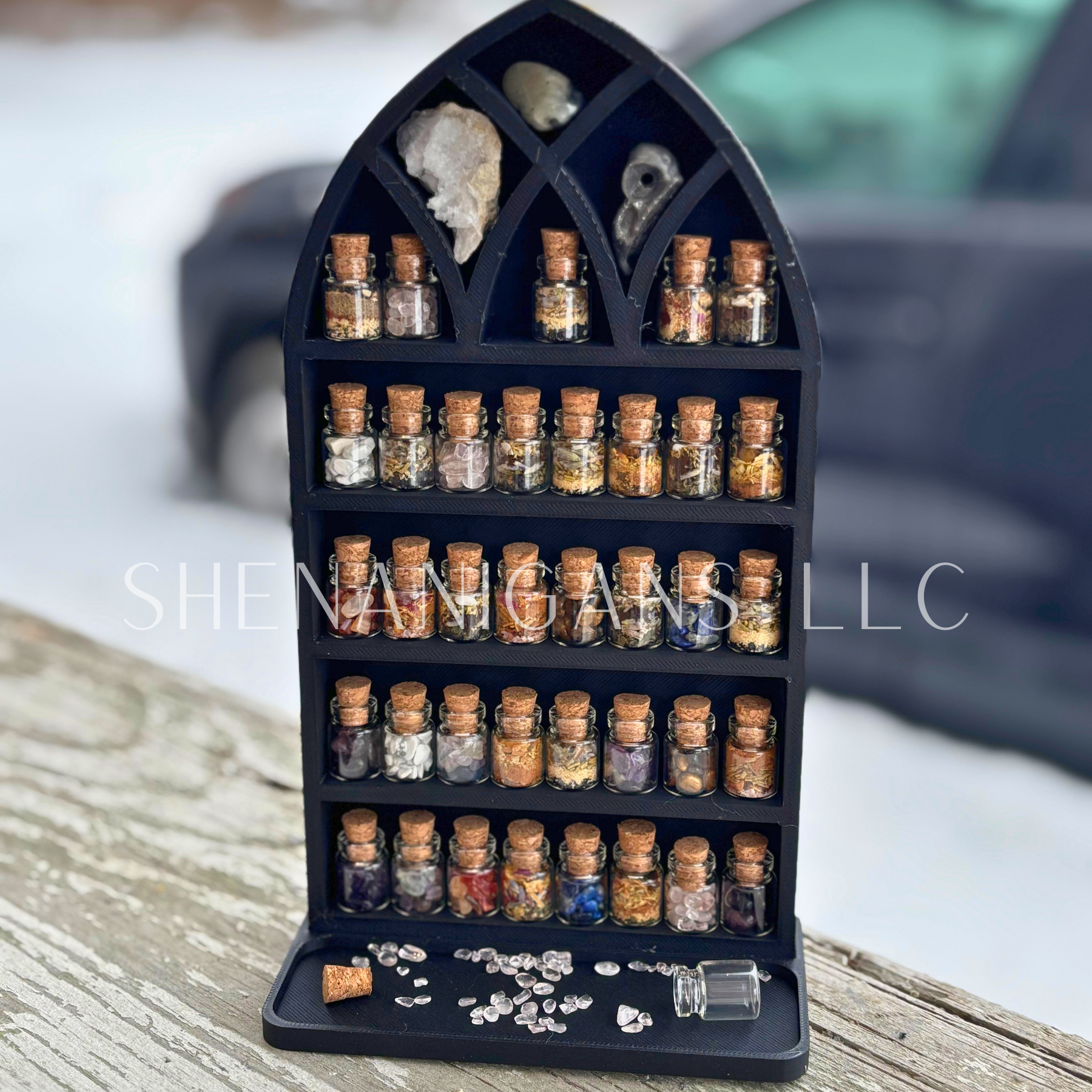 Curio Shelf Gothic Window w/ Tray - Size: Fits 1/2" wide Micro Jars 8x4 - Trinket, Desk, Crystal