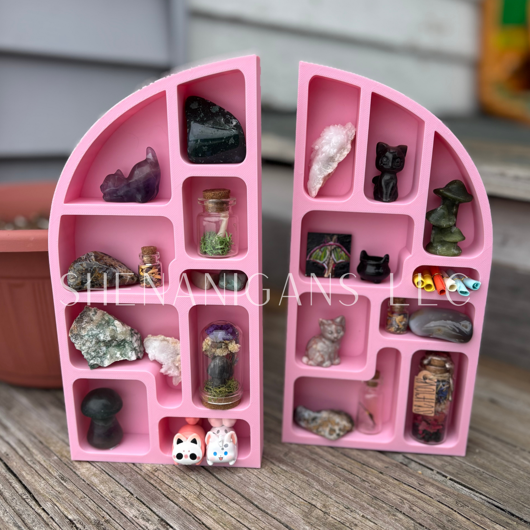 Curio Shelf Half Arch 2 Piece Set - 9 Section - Trinket, Desk, Crystal