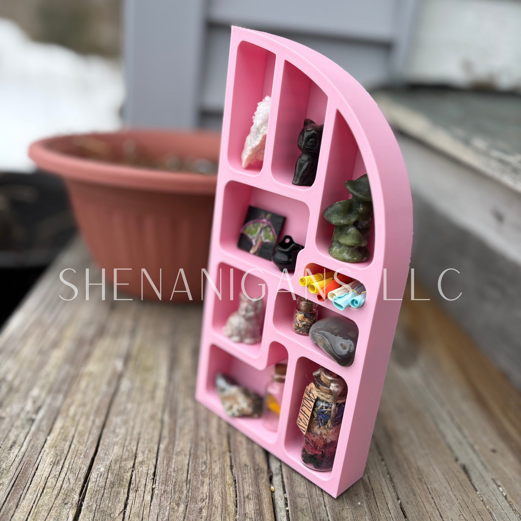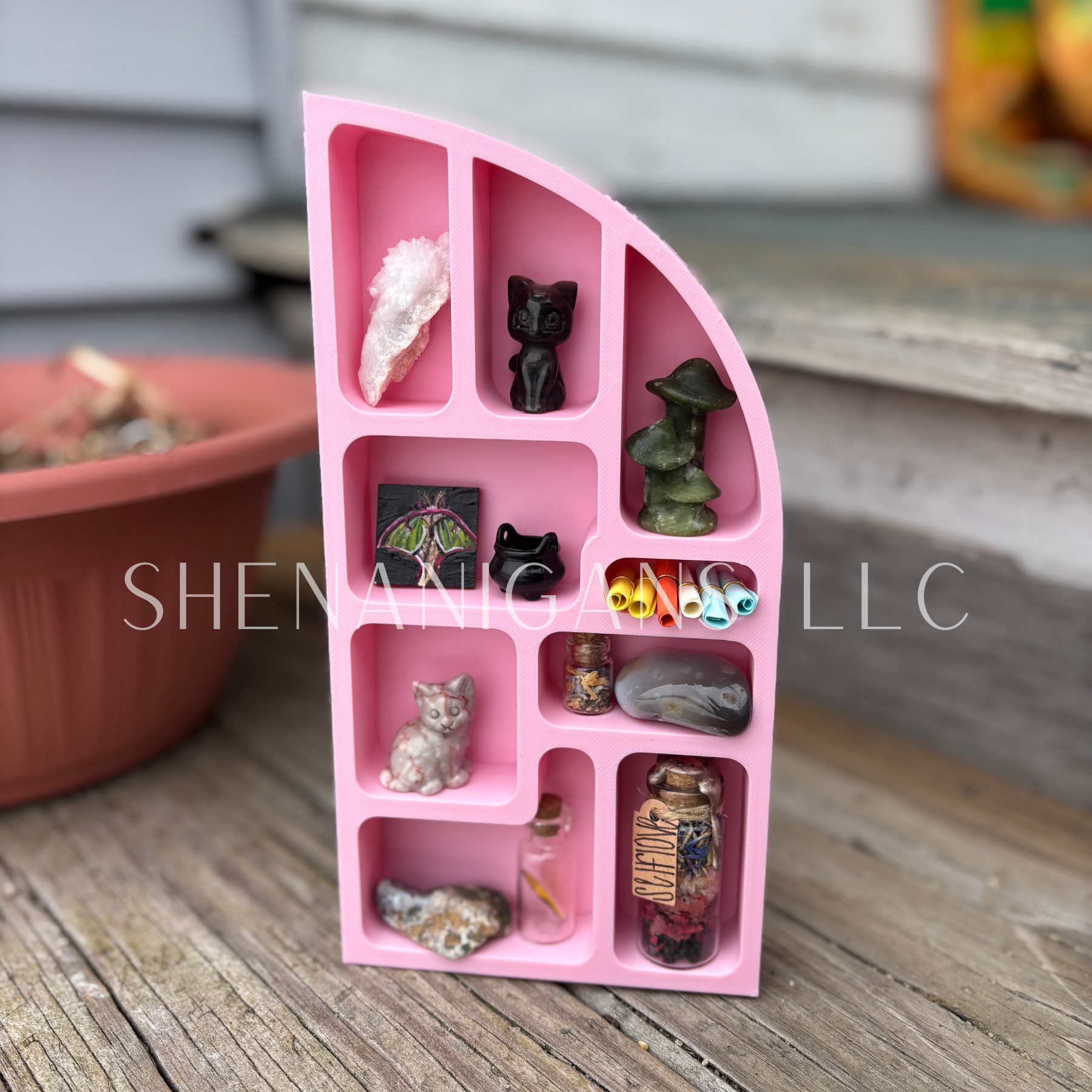 Curio Shelf Half Arch Right - 9 Section - Trinket, Desk, Crystal