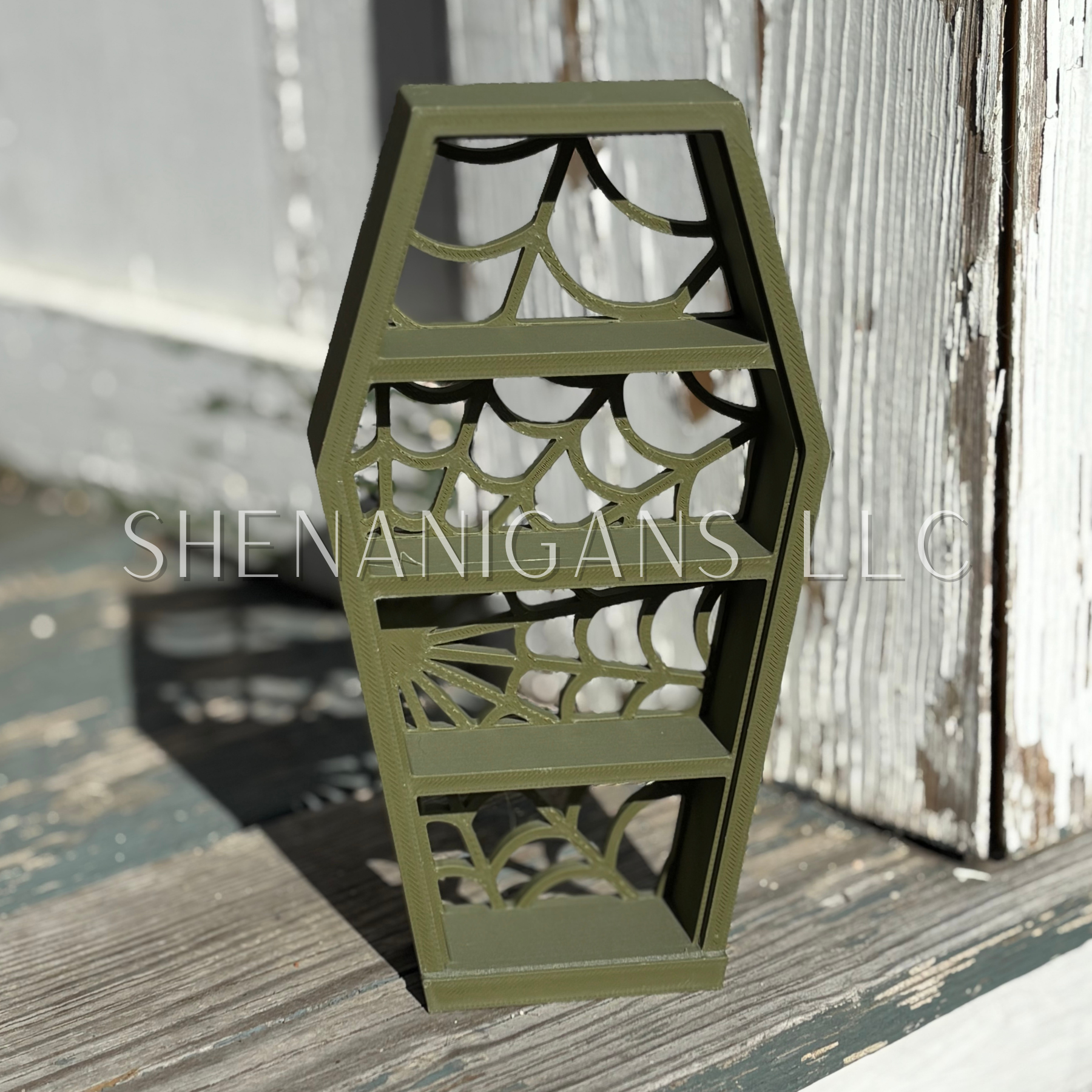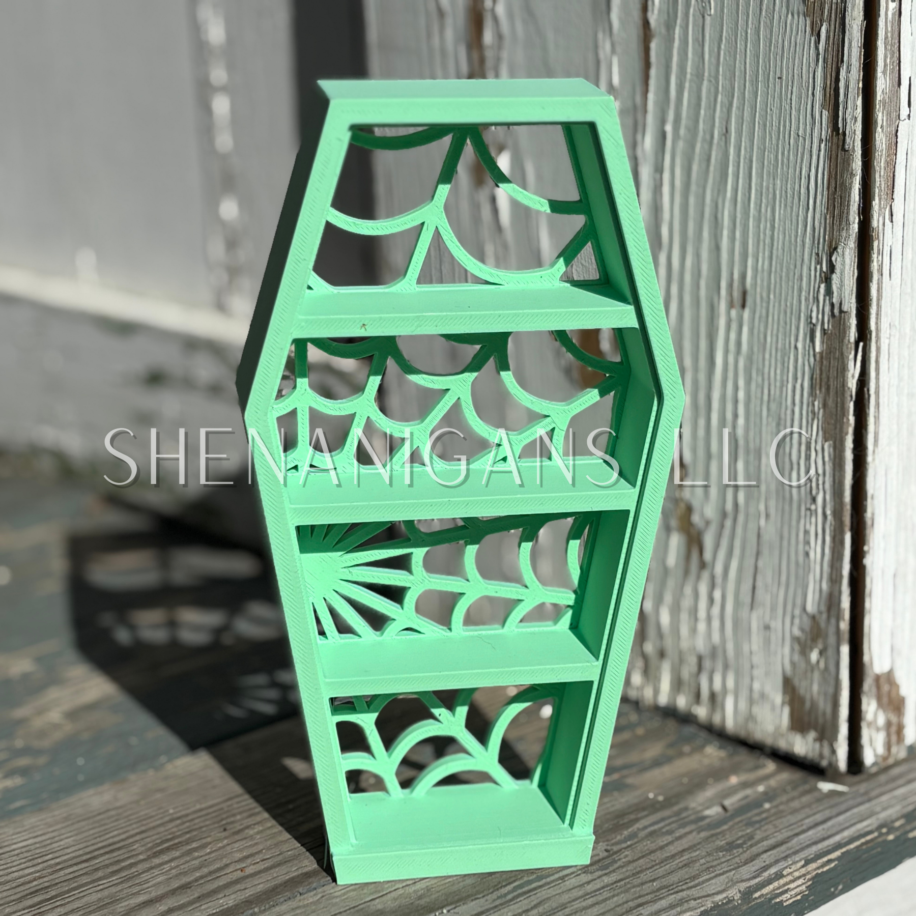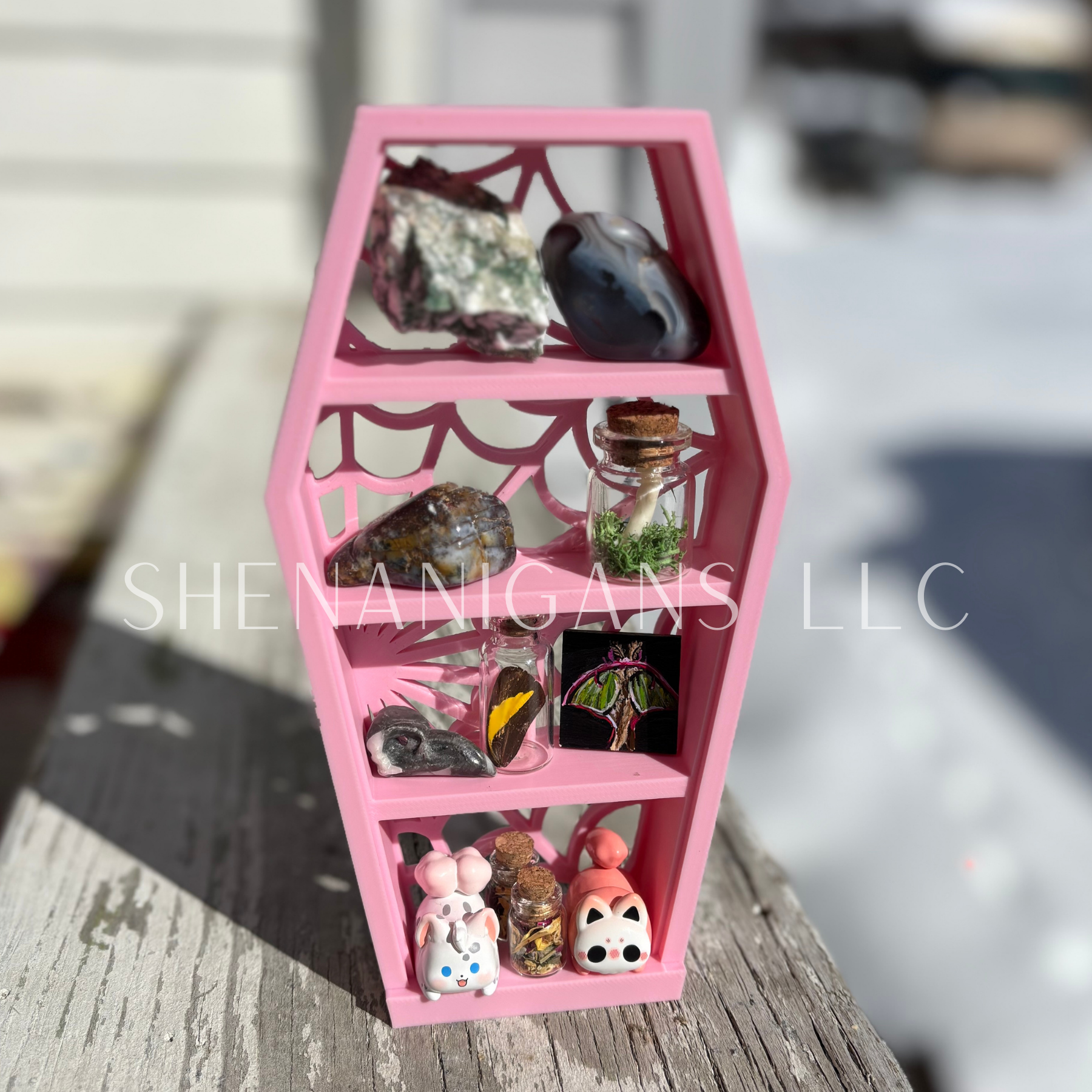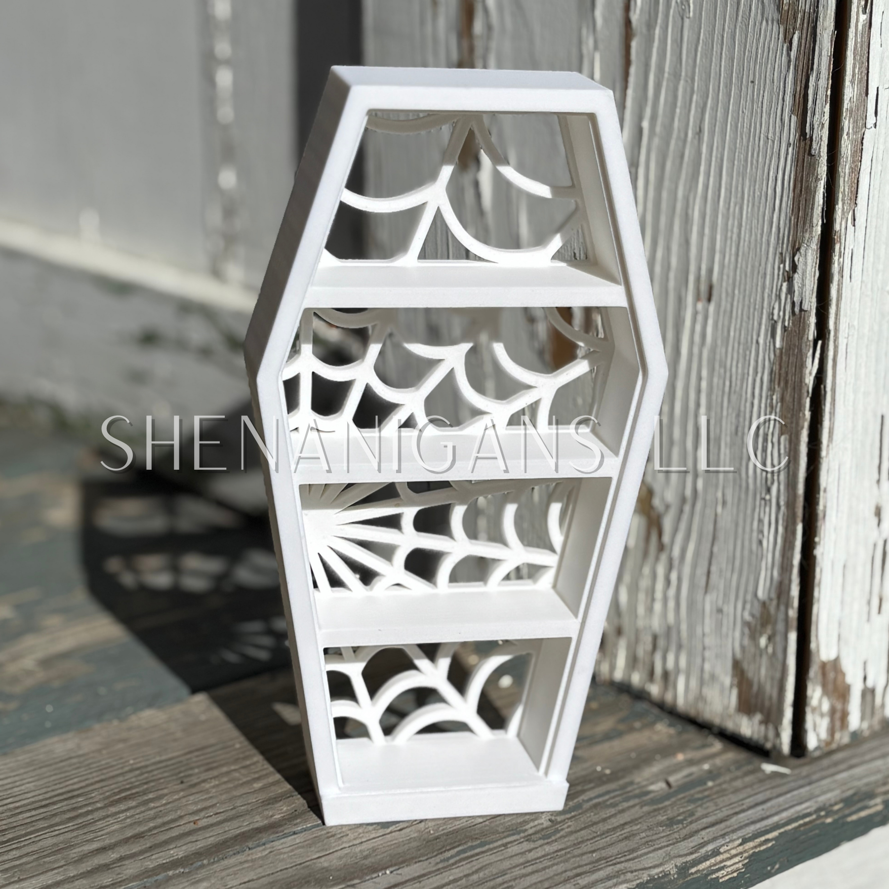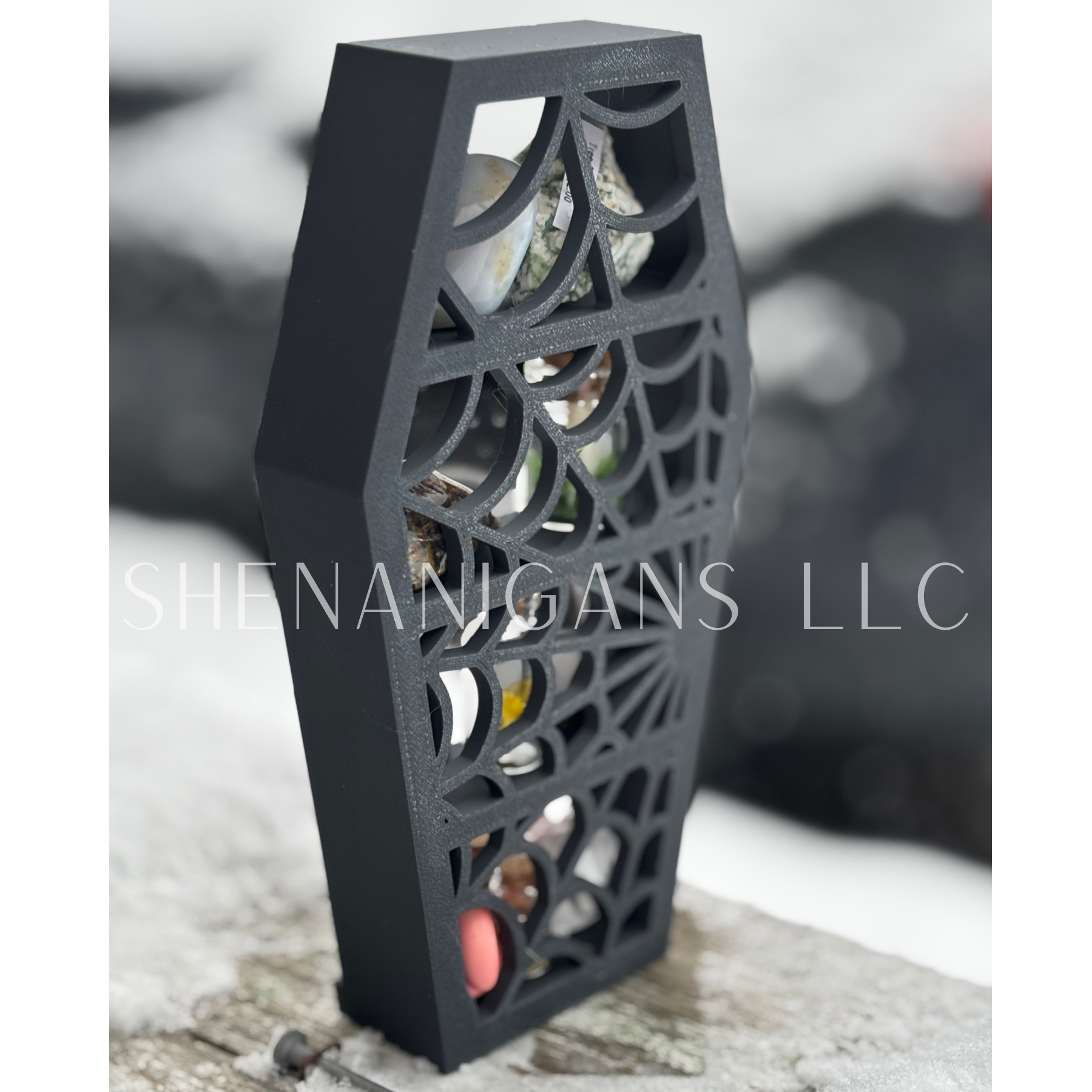 Curio Shelf Spider Web Coffin - 3 Shelf - Trinket, Desk, Crystal