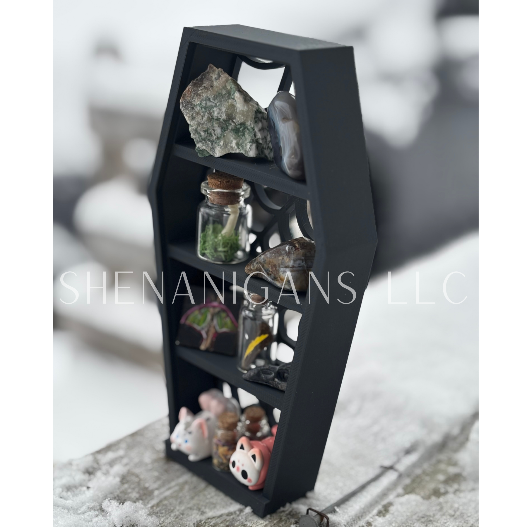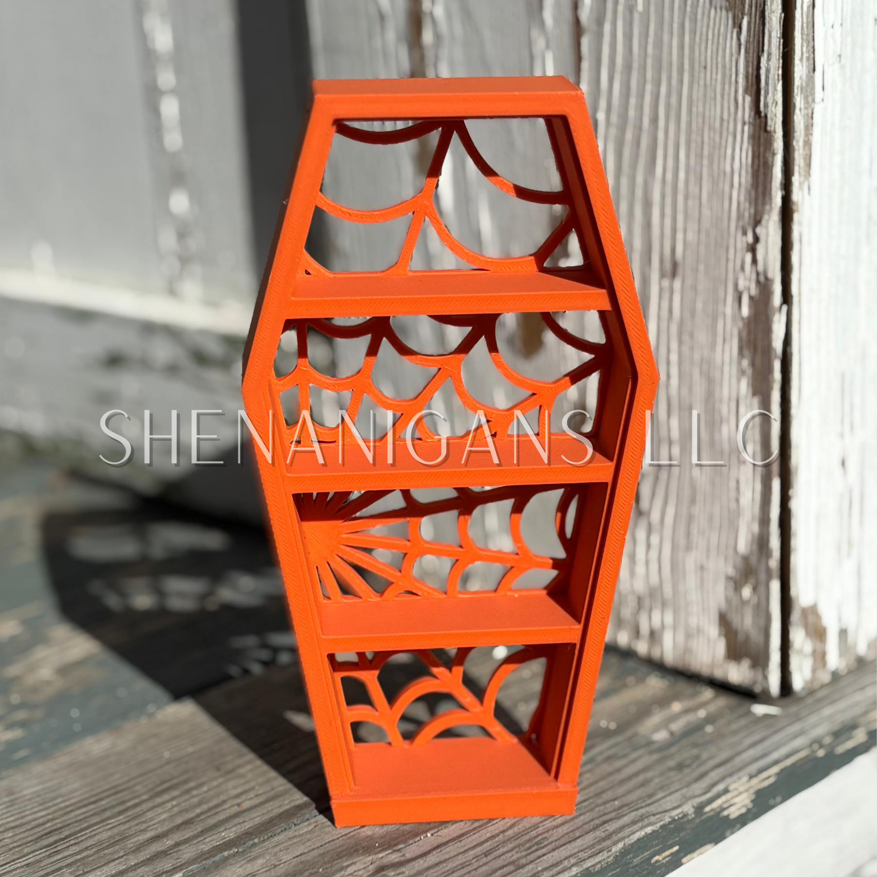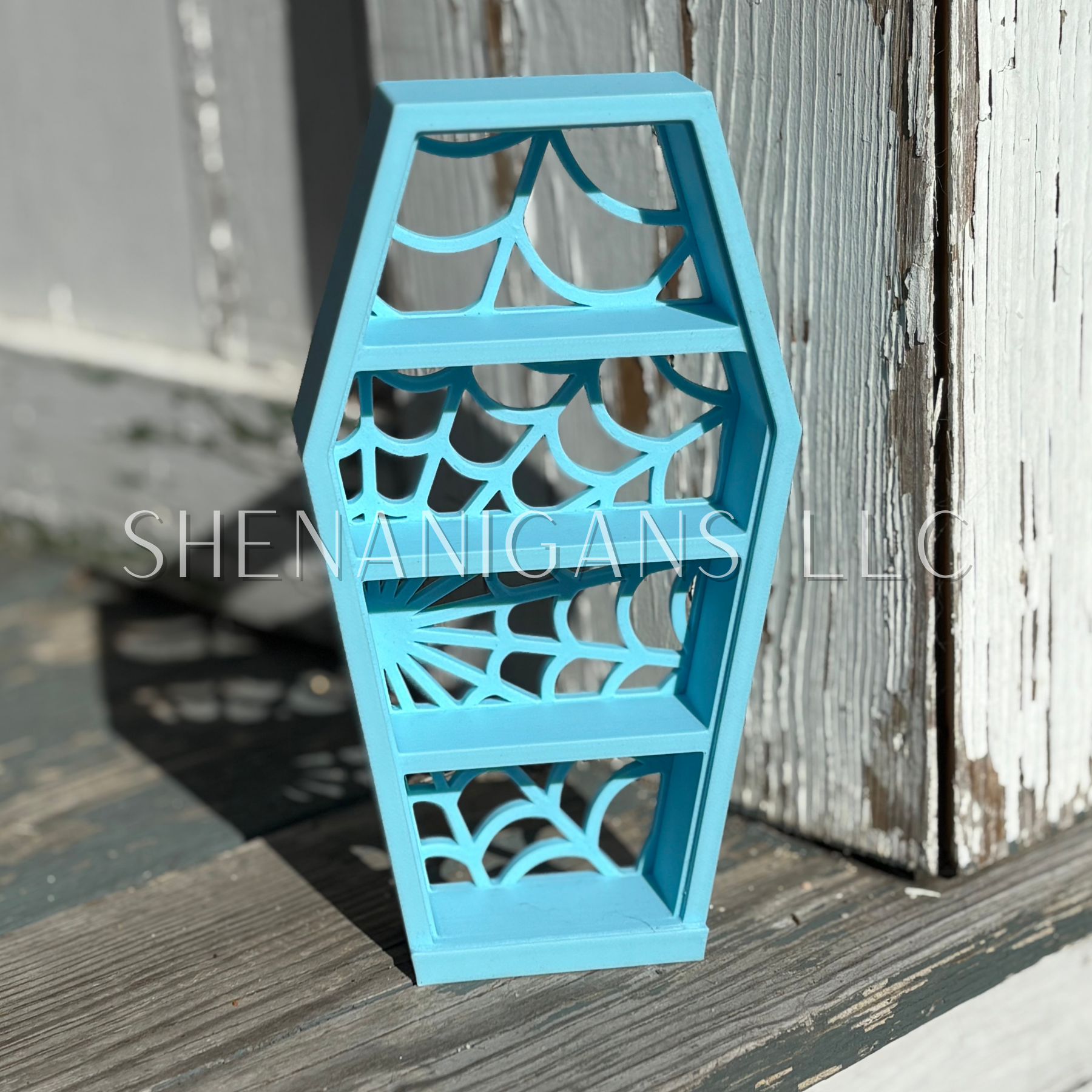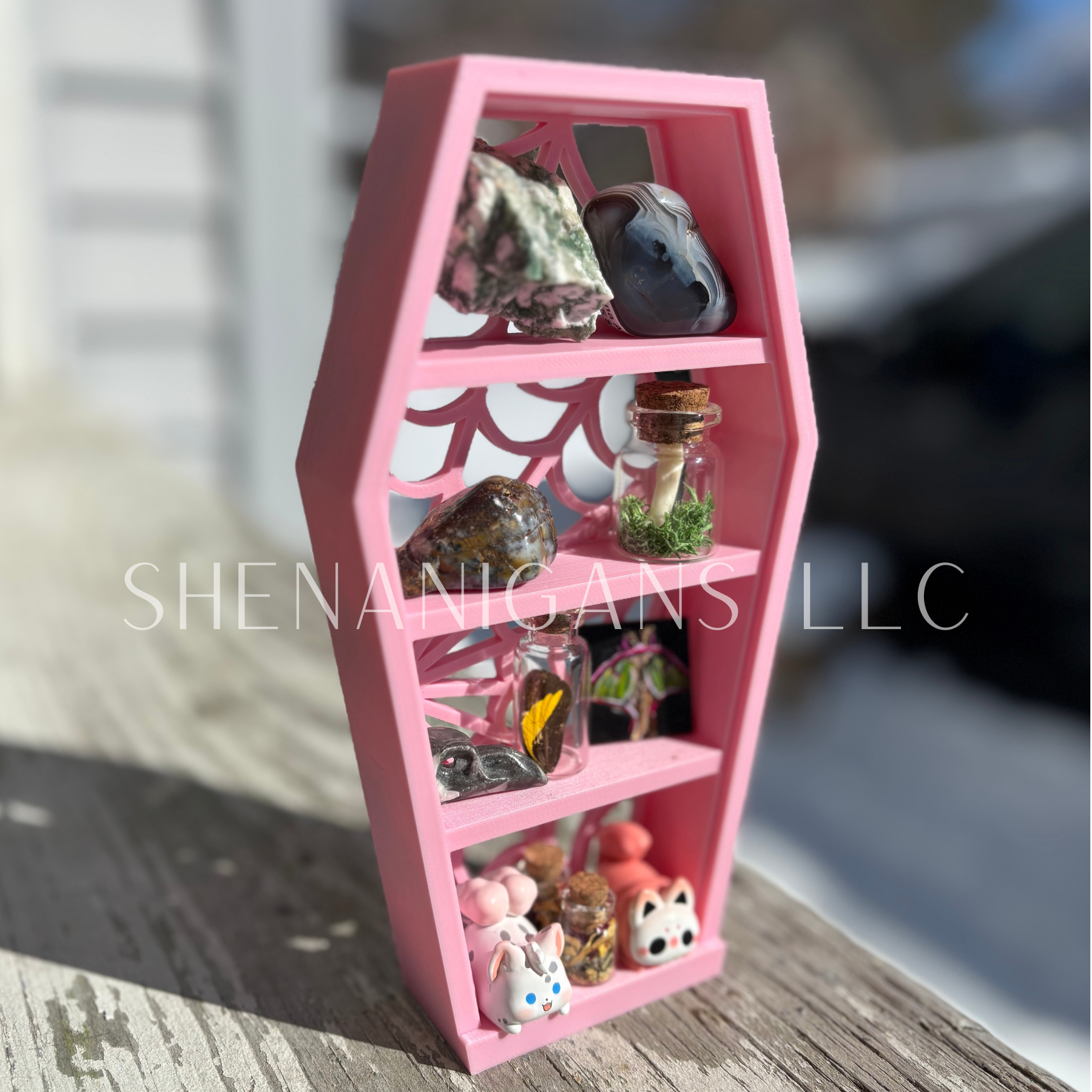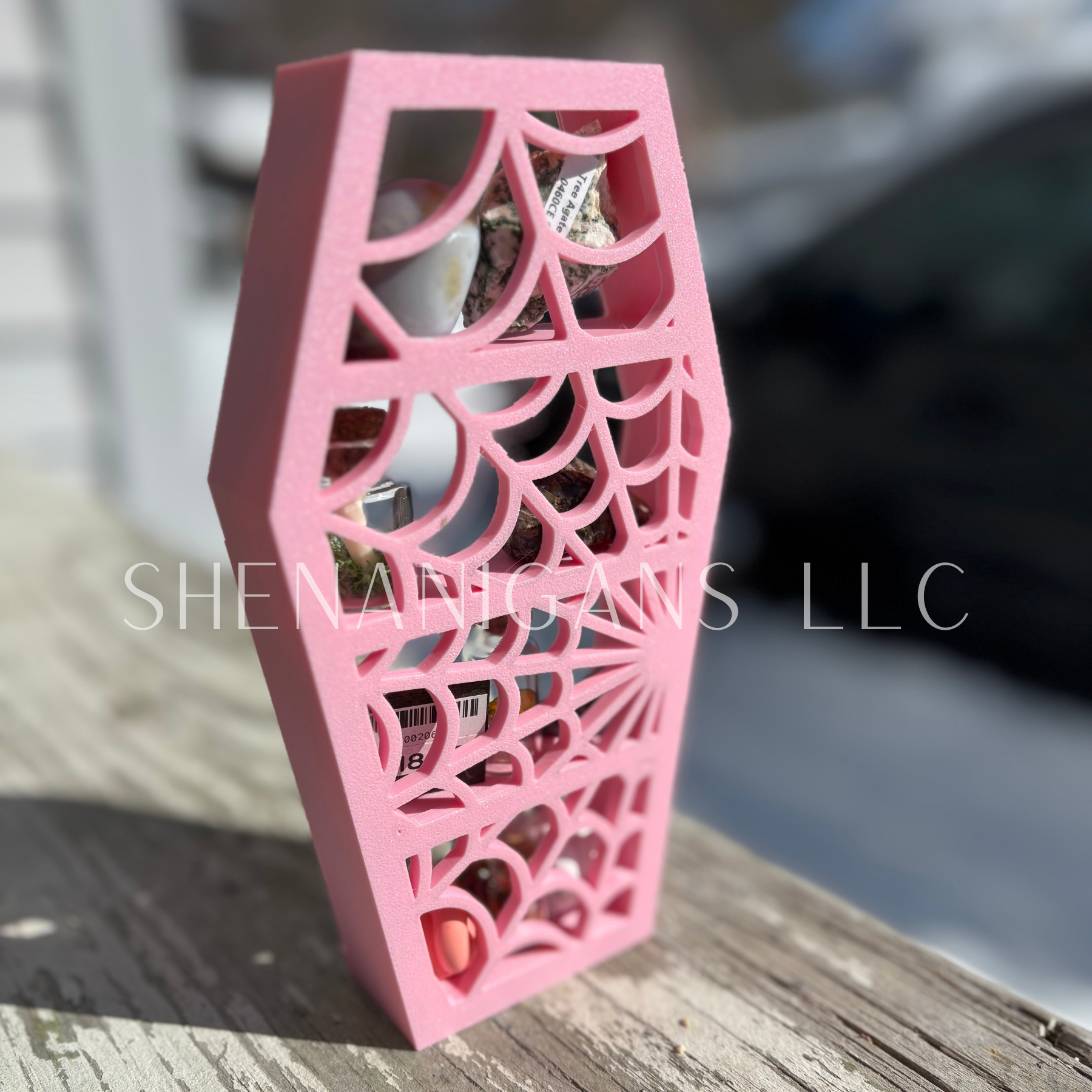 Curio Shelf Spider Web Coffin - 3 Shelf - Trinket, Desk, Crystal