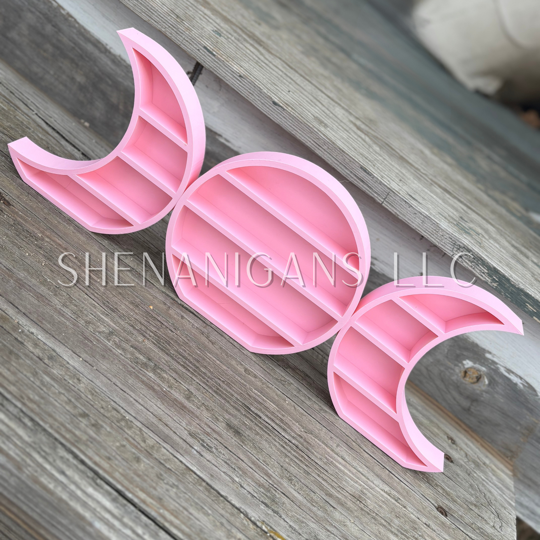 Curio Shelf Triple Goddess - Moon Phase 3 Piece Set - 3 Shelf - Trinket, Desk, Crystal