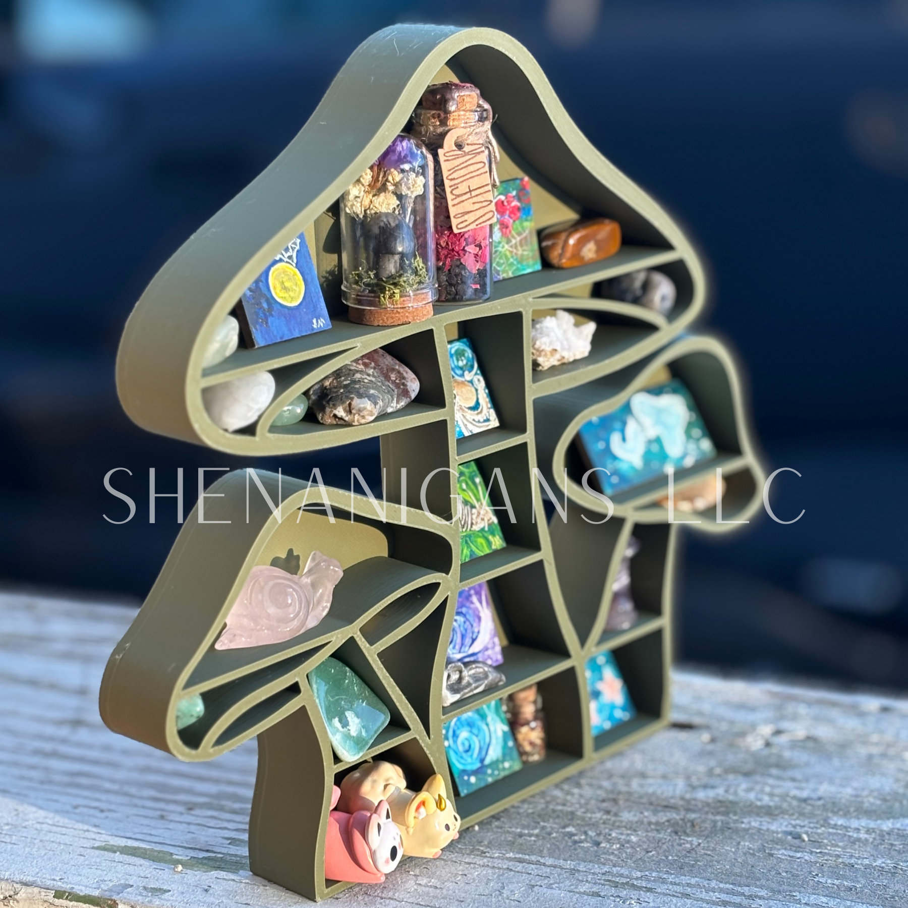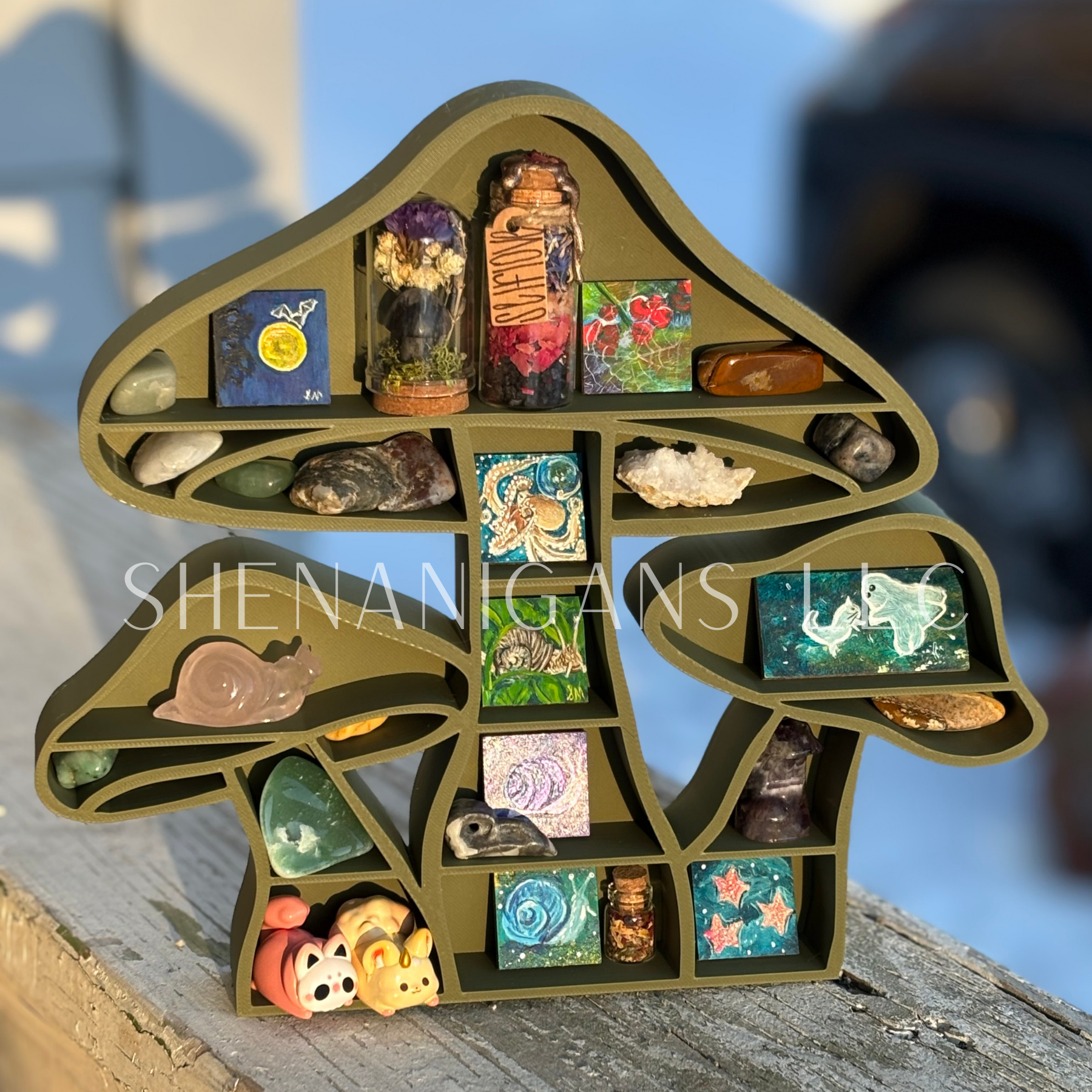 Curio Shelf Triple Mushroom - Large Shelf - Trinket, Desk, Crystal