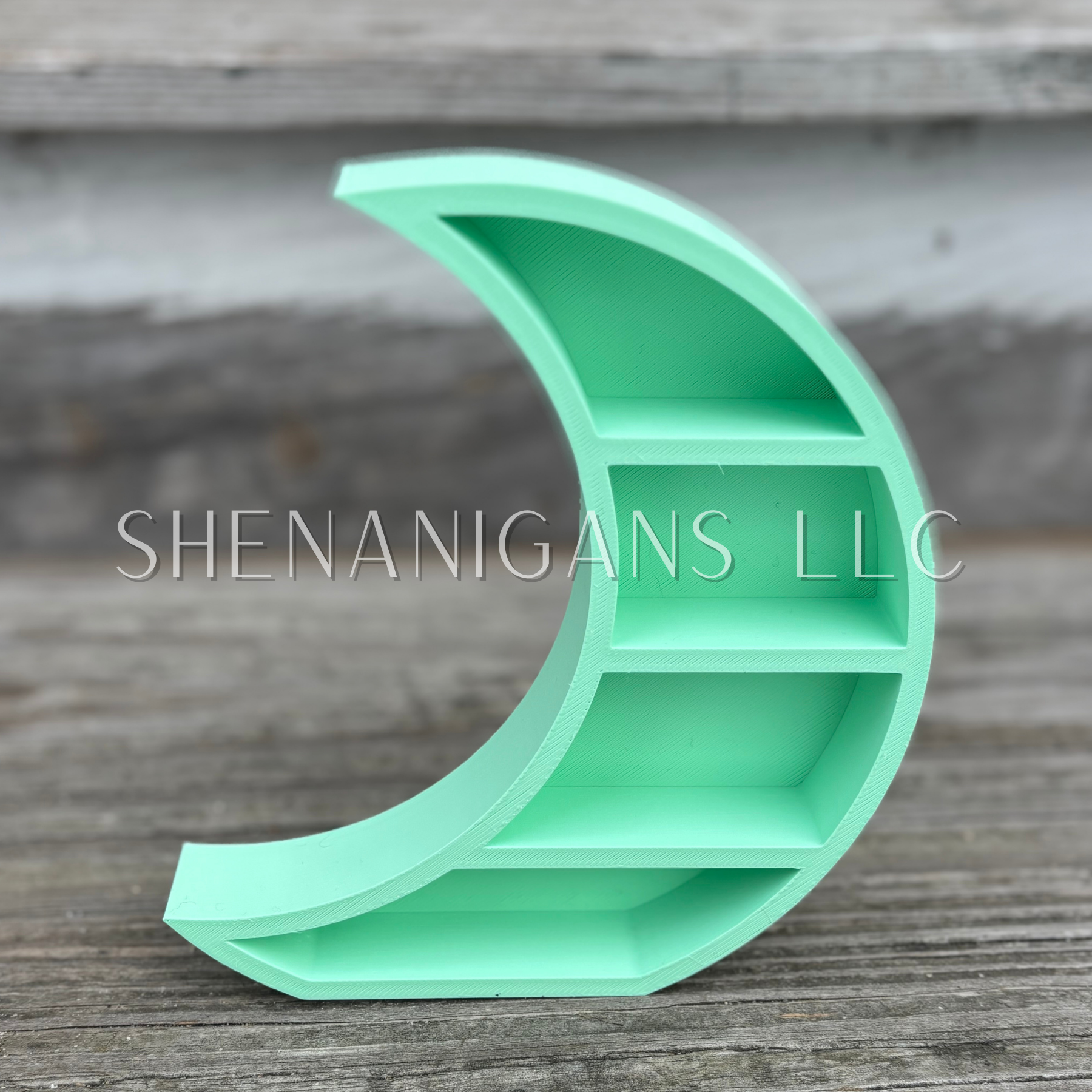 Display your treasures in celestial style with this whimsical crescent moon curio shelf. Perfect for showcasing crystals, trinkets, and collectibles, the three-tiered design offers plenty of room to arrange your favorite finds. Whether you're a crystal enthusiast, desk decorator, or collector of quirky curiosities, this moon-shaped shelf brings a touch of magic and personality to any space. A delightful conversation starter that transforms ordinary items into an enchanting display.