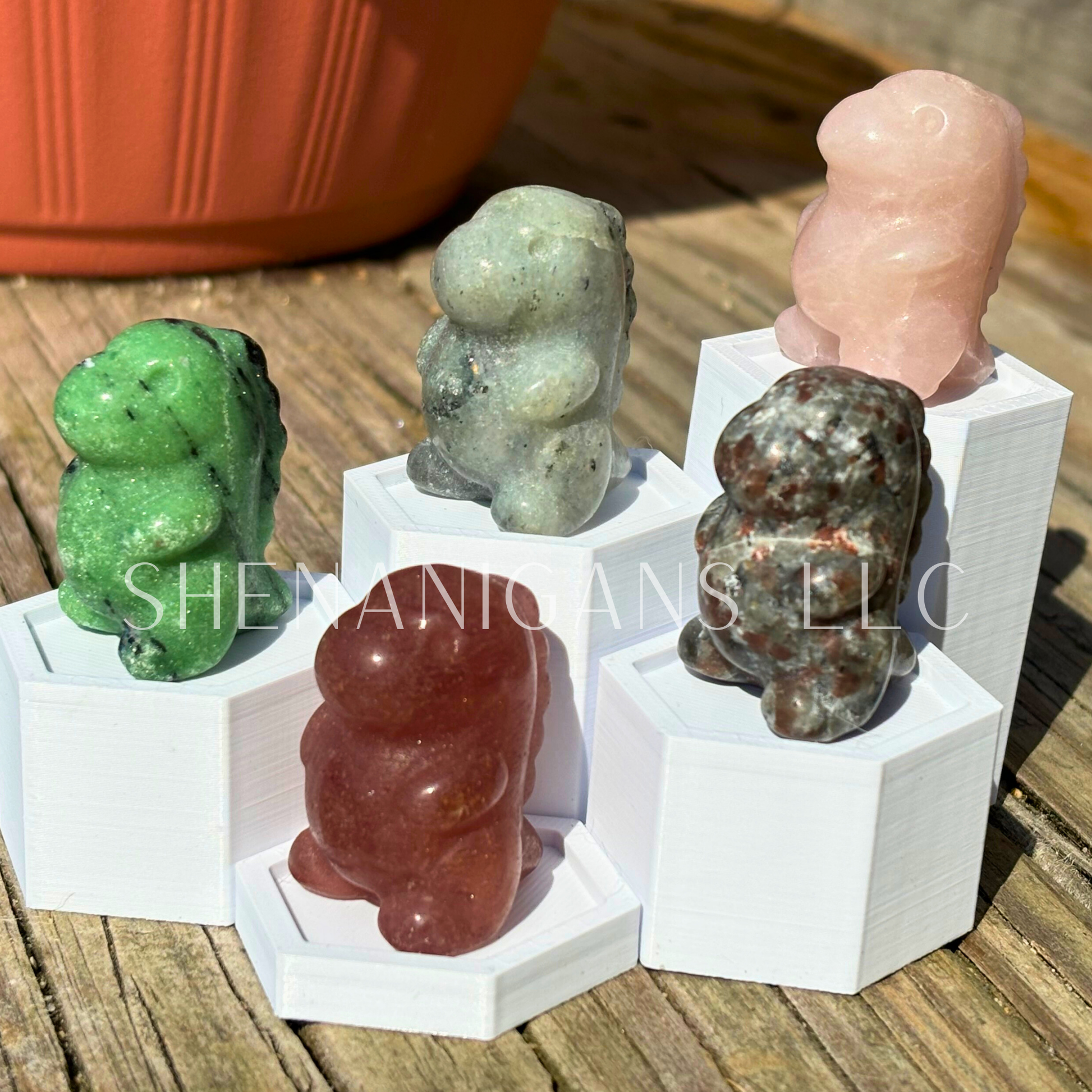 Please Note: These figurines are hand-carved from natural stone/crystal, and as such, may exhibit small chips, nicks, pits, or other surface variations. These are not flaws but rather a testament to the natural formation of the crystal and the hand-carving process, enhancing the distinctive character of each piece.