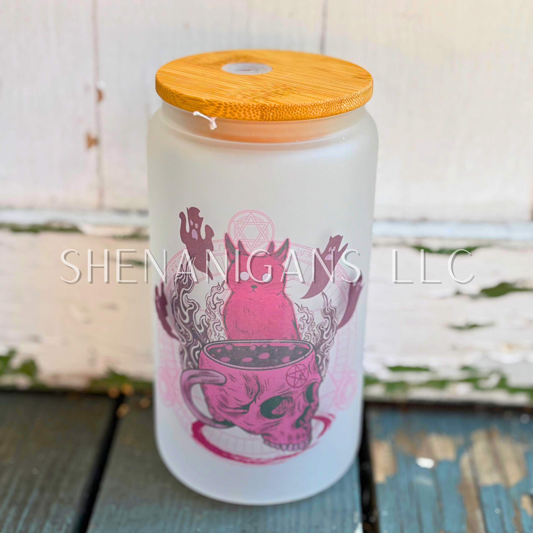 Demon Kitty, Summoning, Skull Coffee Mug, Glass Tumbler, Ghost, Spirits, Summoning Circle
