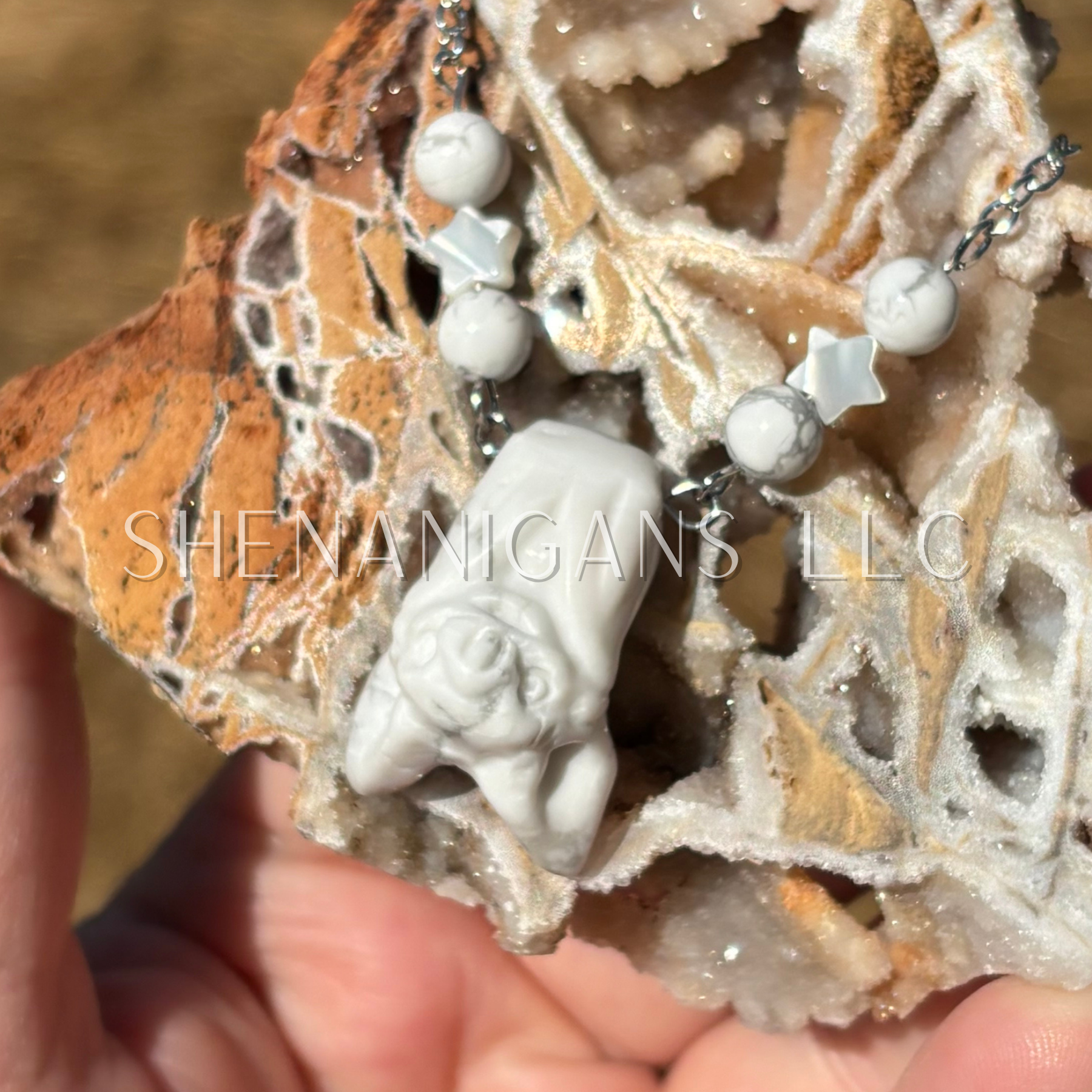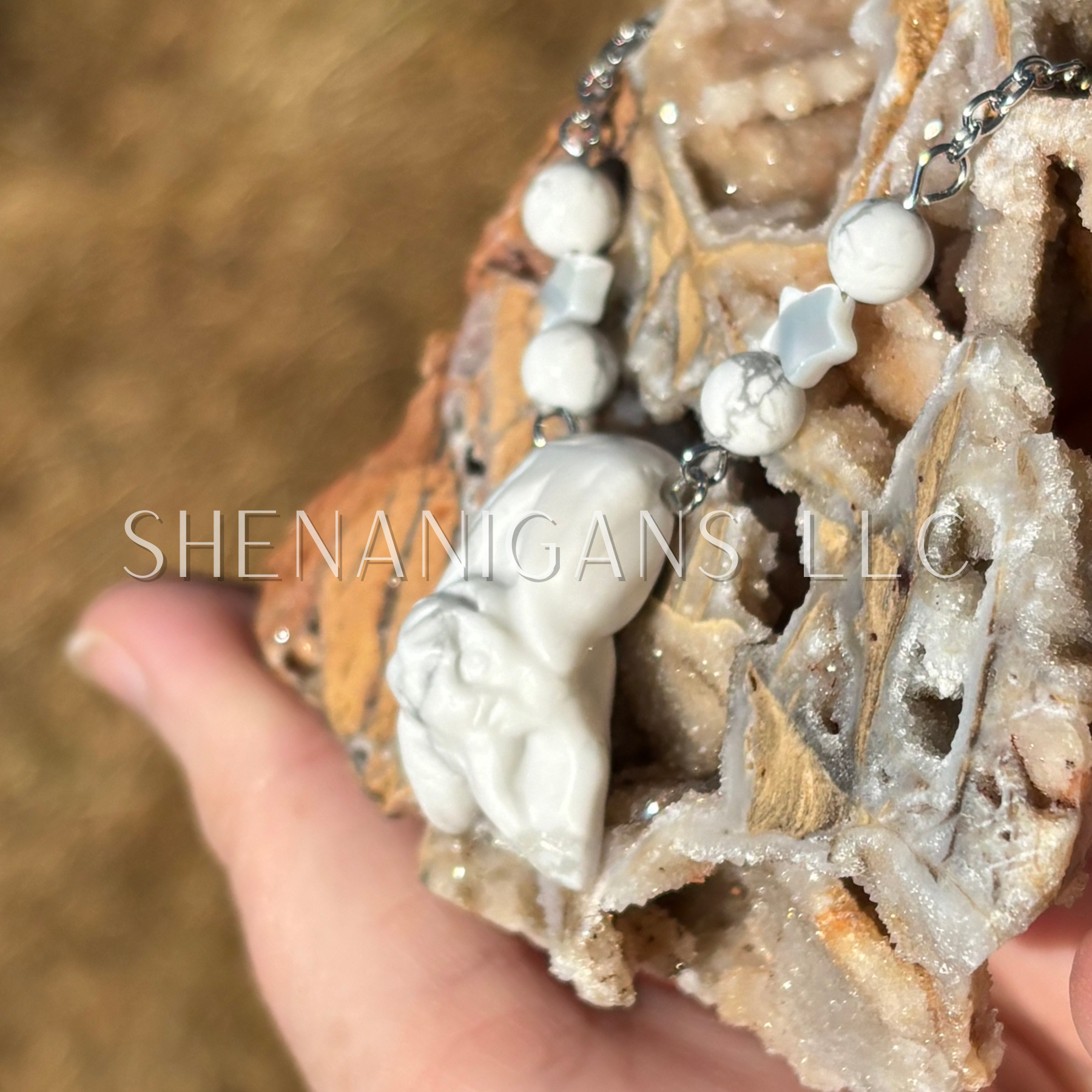 Howlite Hanging Fruit Bat Necklace with Howlite Beads