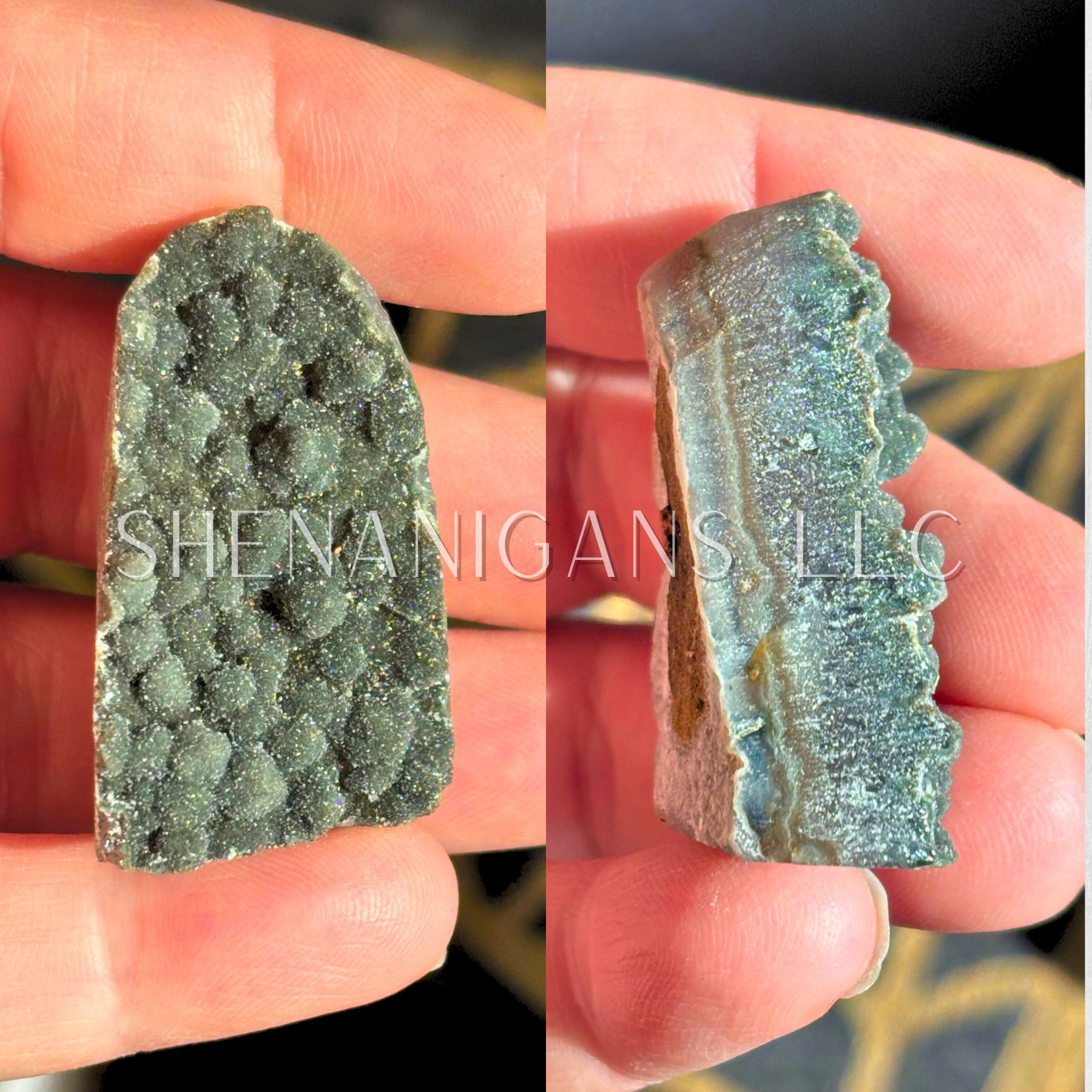 Elevate your space with our Mini Druzy Geode Towers. These towers are made from real geodes, adding a natural and unique touch to any room. Perfect for crystal collectors and anyone who loves a one-of-a-kind piece. (Rock on!)