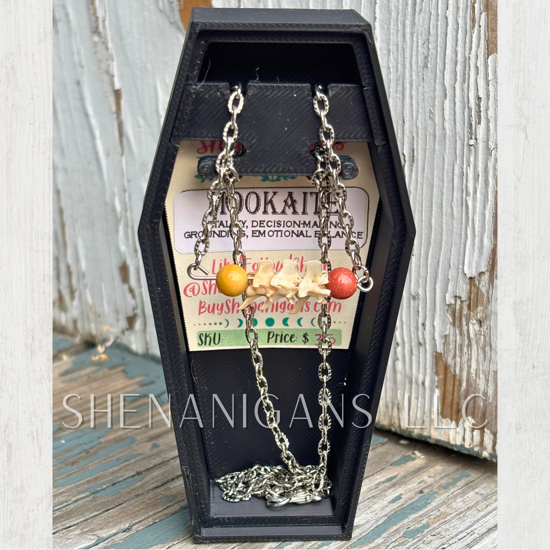 Mookaite & Rattlesnake Vertebrae Necklace with Silver Hammered Chain