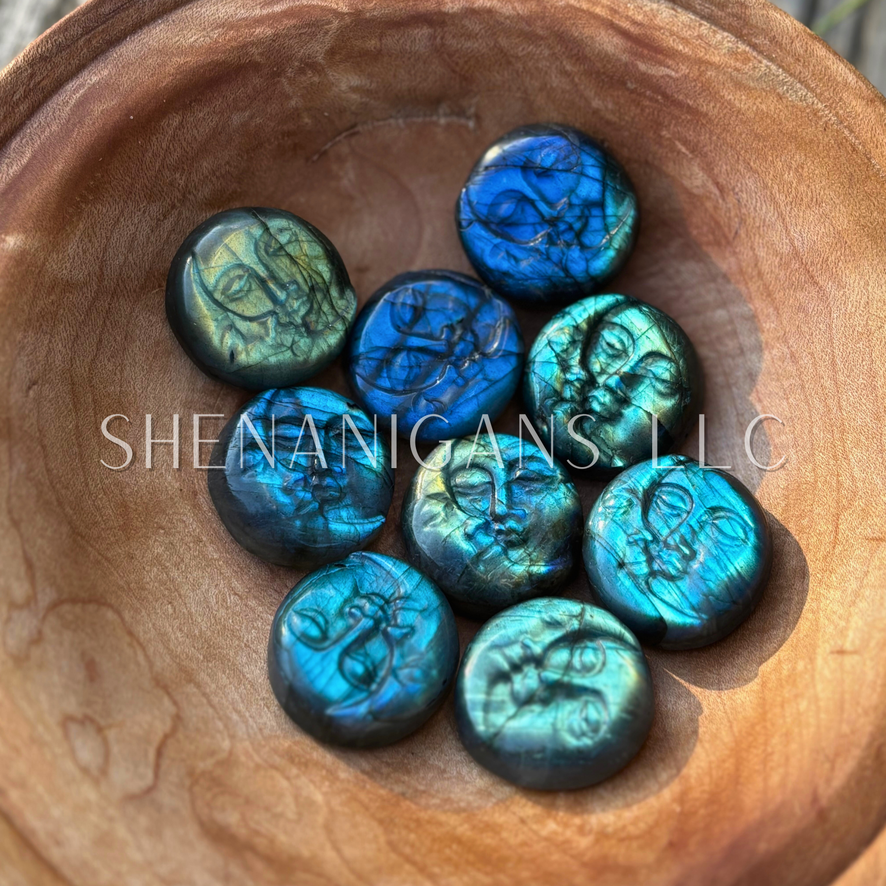 Moon Sun Face - Small Pendant Size - Flat Crystal Carving