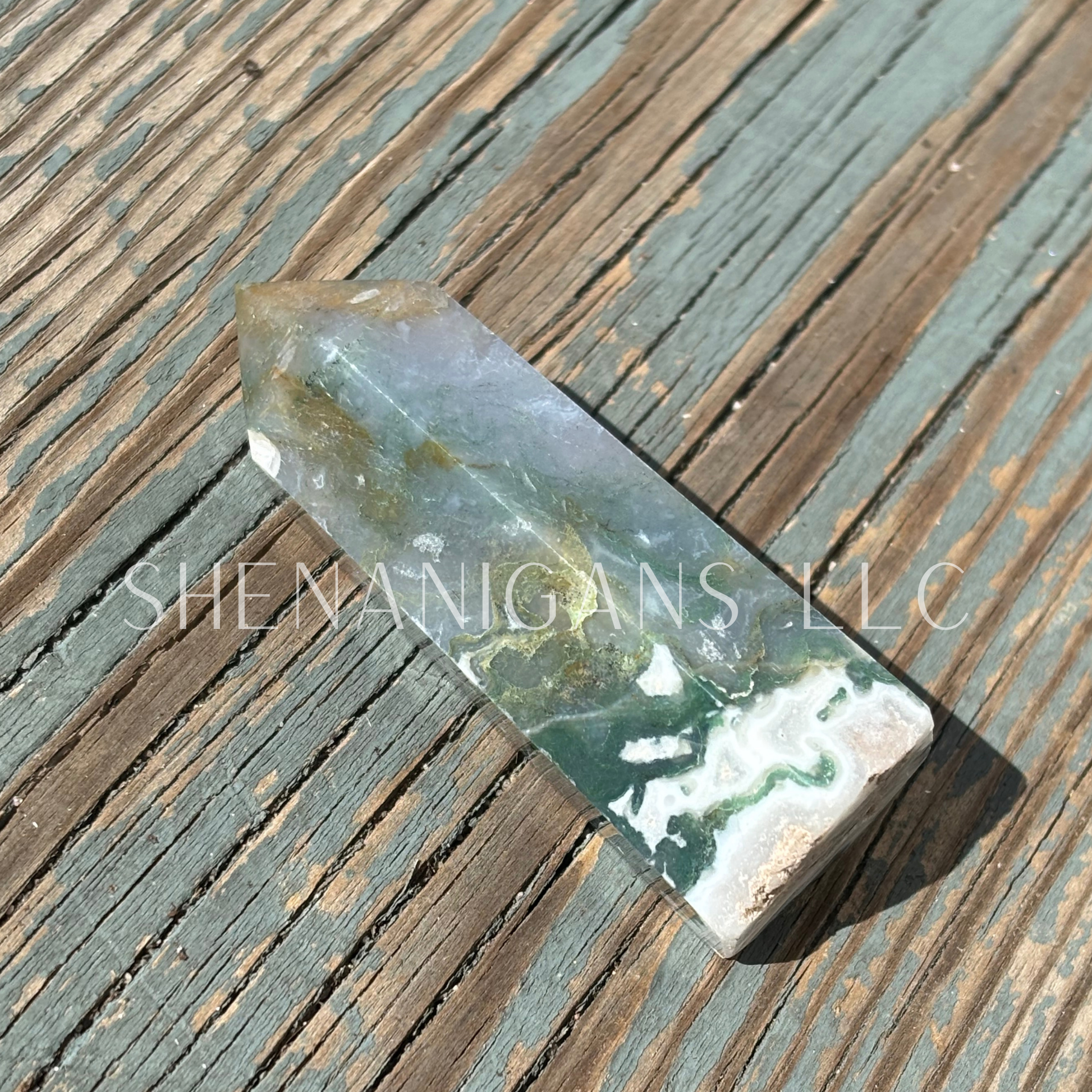 Moss Agate Polished Point Mineral Specimen Gemstone Crystal Obelisk Wand