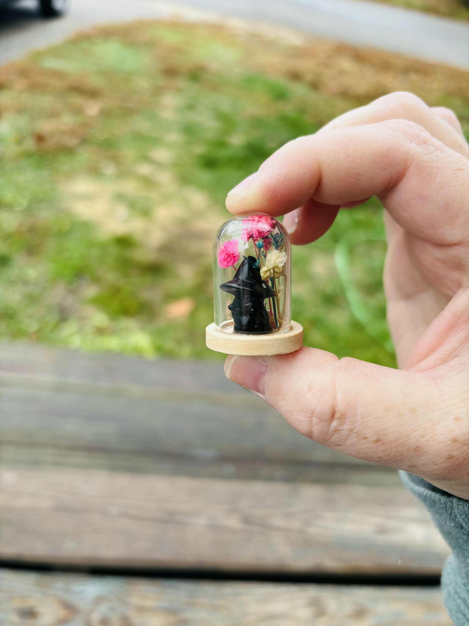 Bring a touch of magic to your space with this charming dome jar featuring gorgeous crystals and delicate preserved flowers. Perfect for adding whimsy to shelves, desks, or nightstands, this petite 2.25" treasure combines natural beauty with playful flair. Each jar is a one-of-a-kind display piece that celebrates the wonder of nature's finest gems and botanicals. A delightful gift for crystal lovers and plant enthusiasts alike!