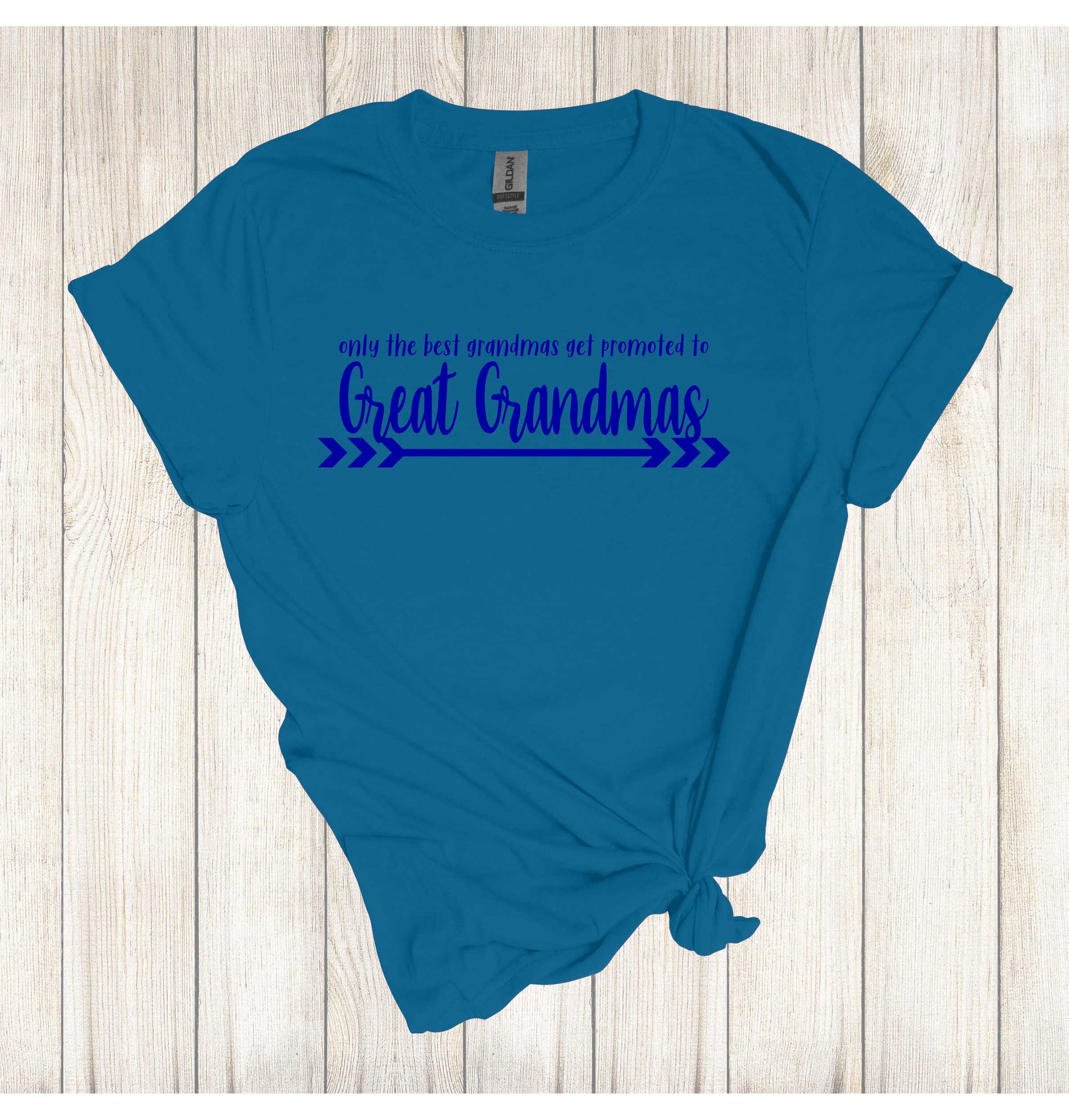 Only the best grandmas are promoted to great grandma, and now you can show your appreciation for the special lady in your life with this unique apparel! Perfect for gift-giving or to show off your own grandma pride, this super-soft shirt is sure to be a hit with the grandma who loves to show off her great-grandma status!