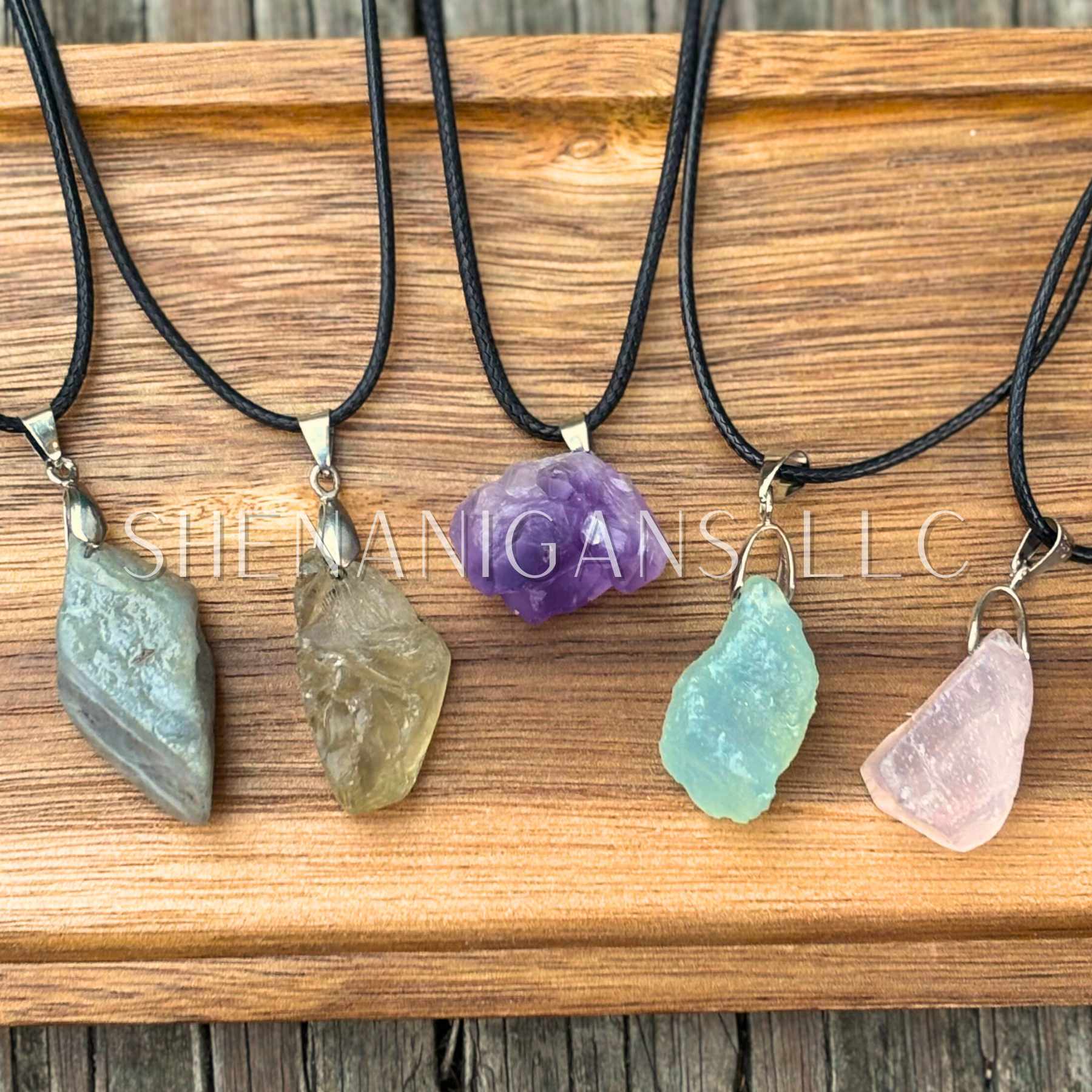Carry the natural energy of crystals with our Raw Stone Pendant Necklace, strung on a sleek black satin silk cord with a lobster clasp and extension chain for adjustable comfort. Each pendant features a genuine raw stone, making every piece unique in shape, texture, and energy.
