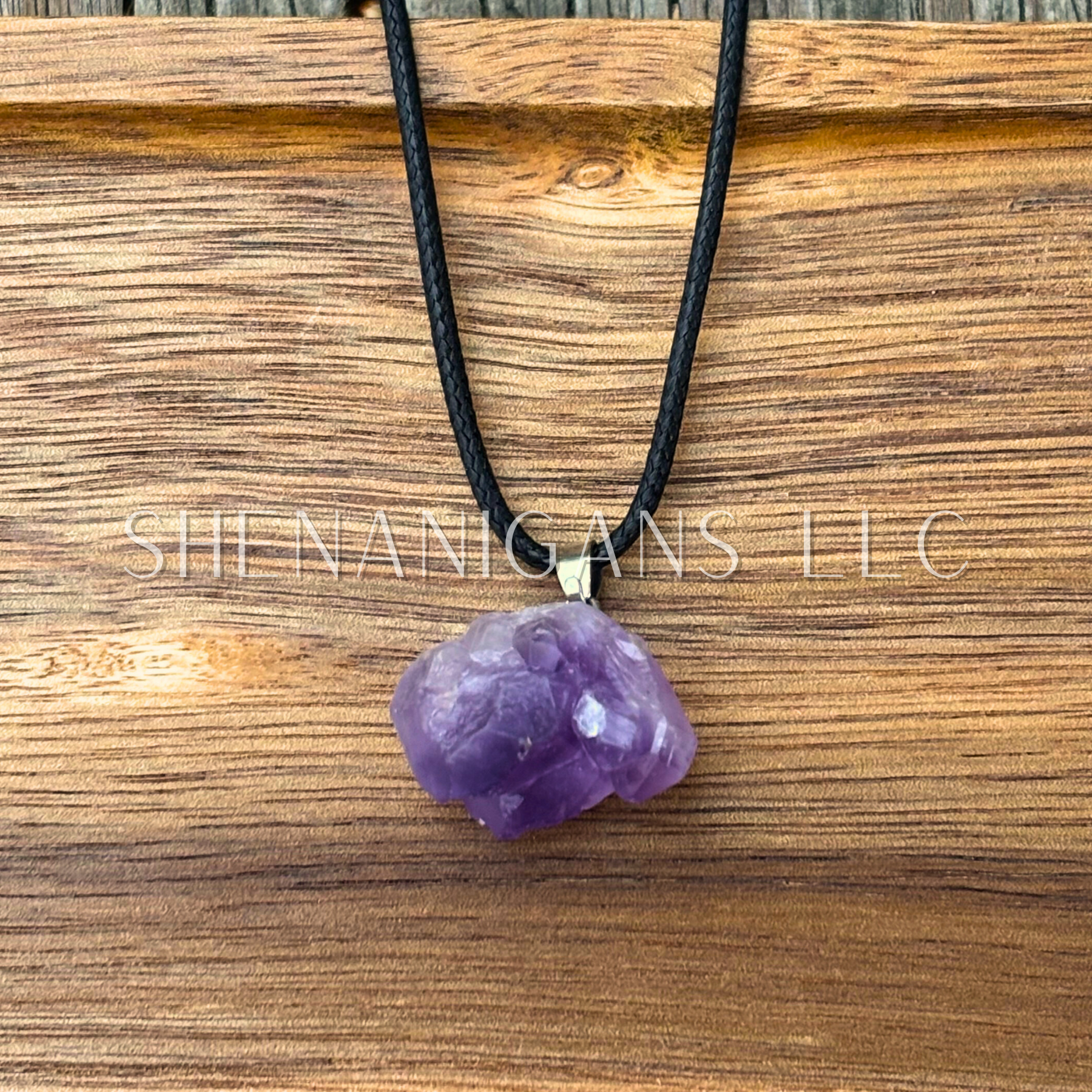 Raw Stone Pendant Necklace – Satin Silk Cord with Lobster Clasp (Amethyst, Citrine, Rose Quartz, Labradorite, Aquamarine)