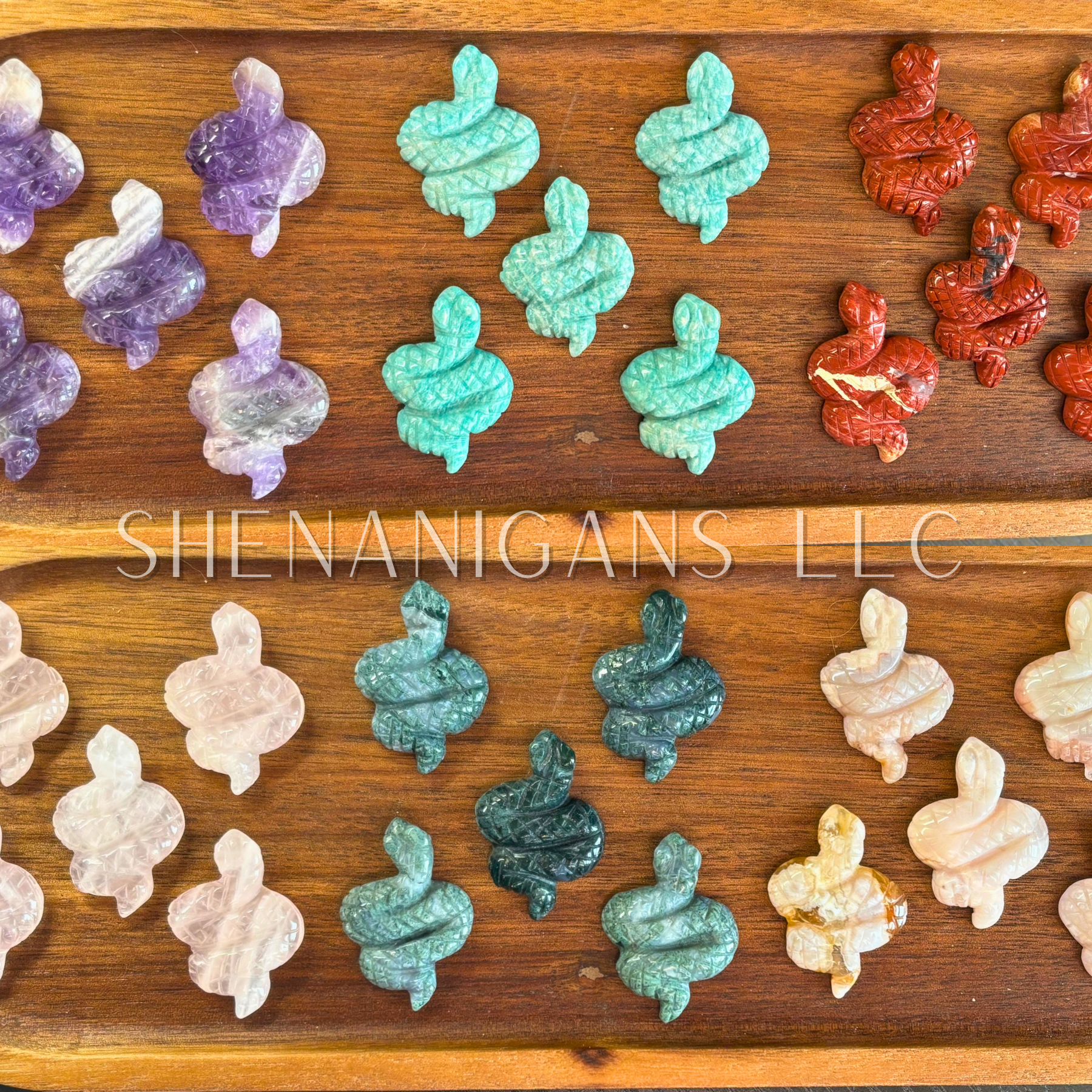 Please Note: These figurines are hand-carved from natural stone/crystal, and as such, may exhibit small chips, nicks, pits, or other surface variations. These are not flaws but rather a testament to the natural formation of the crystal and the hand-carving process, enhancing the distinctive character of each piece.