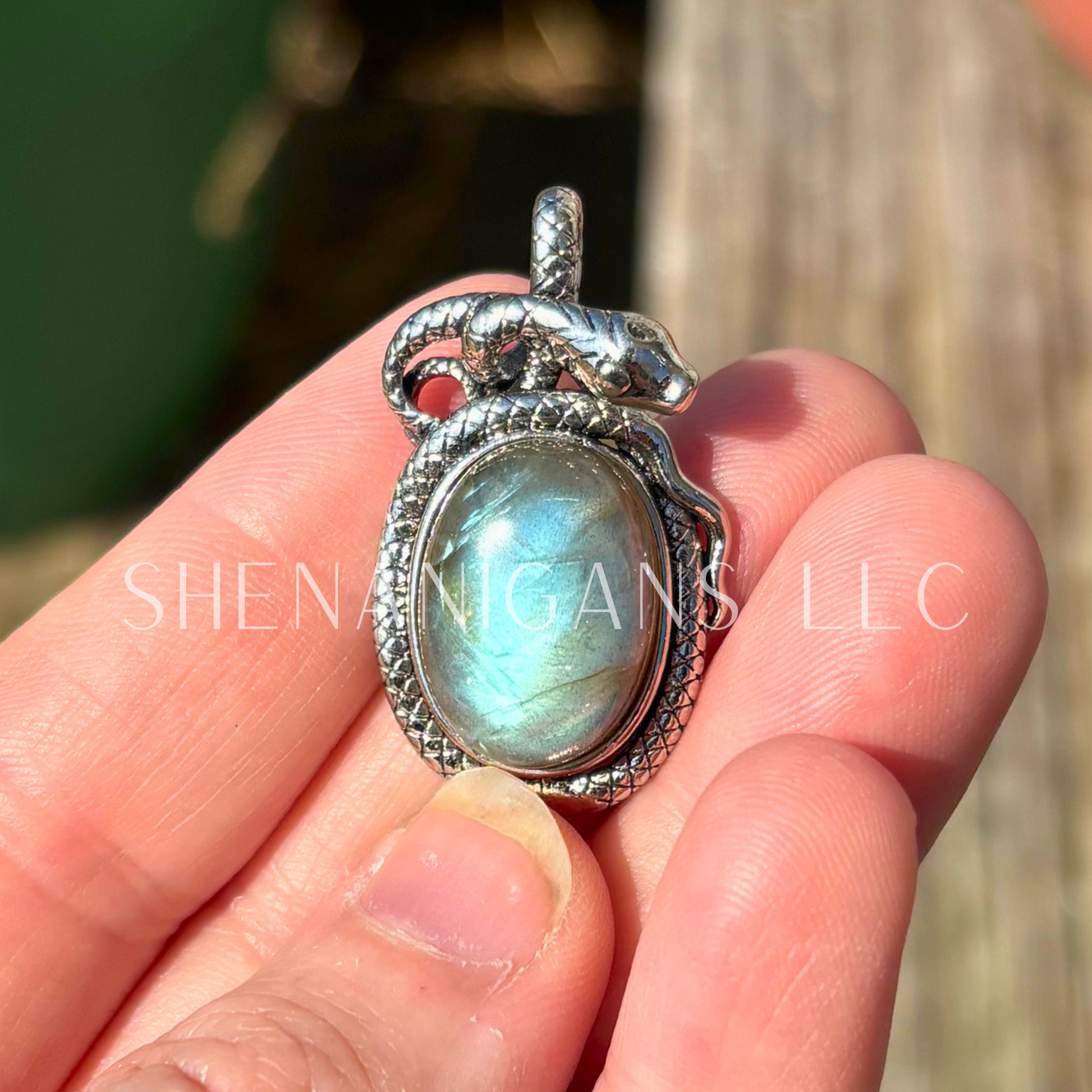 Snake Wrapped Pendant - Blue Flash Labradorite