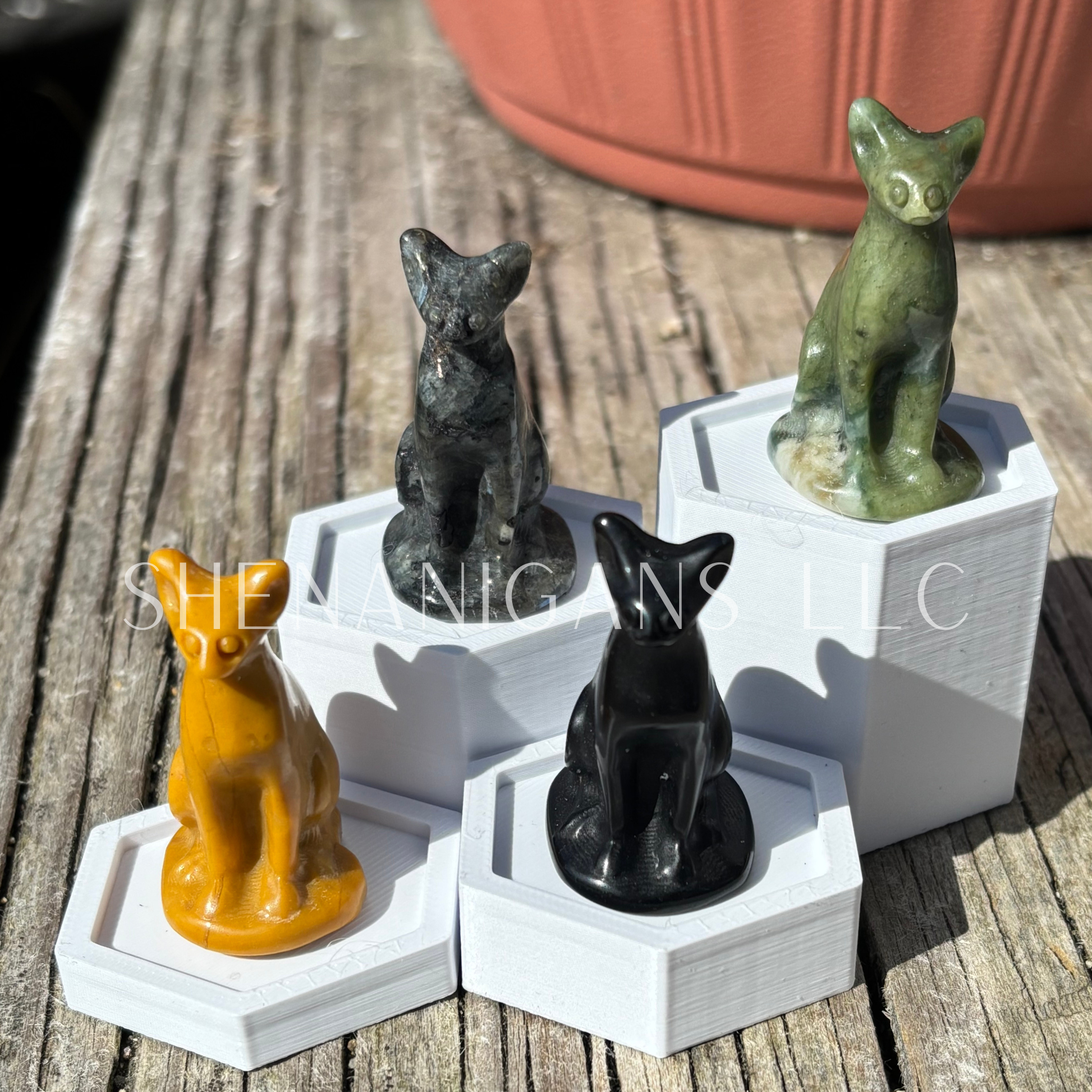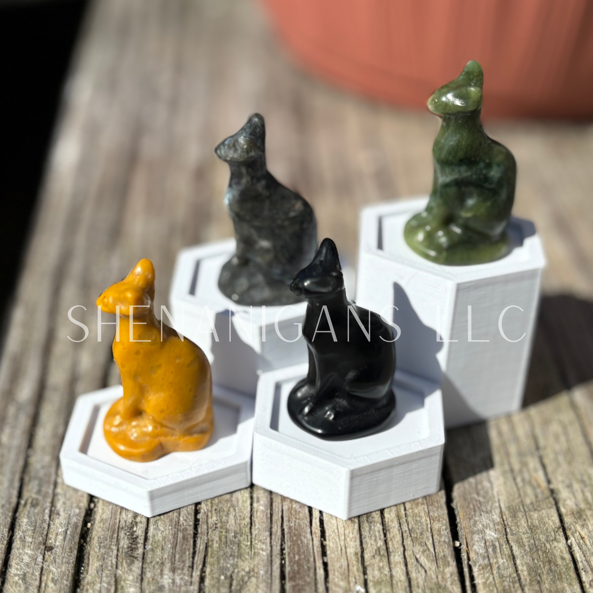 Please Note: These figurines are hand-carved from natural stone/crystal, and as such, may exhibit small chips, nicks, pits, or other surface variations. These are not flaws but rather a testament to the natural formation of the crystal and the hand-carving process, enhancing the distinctive character of each piece.