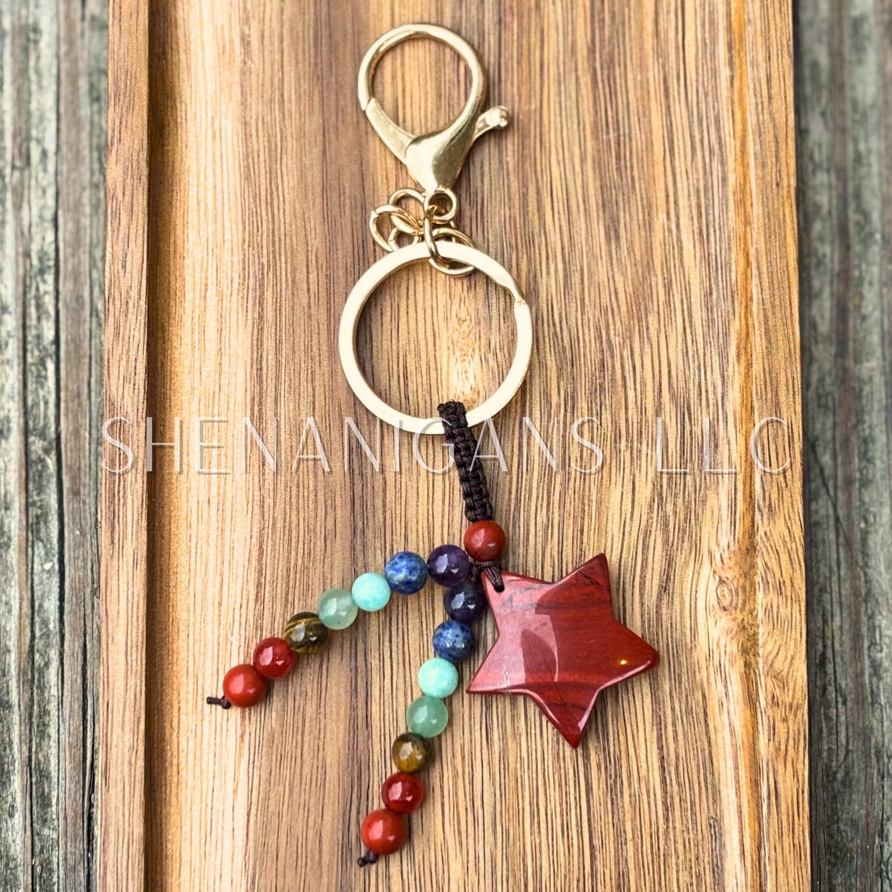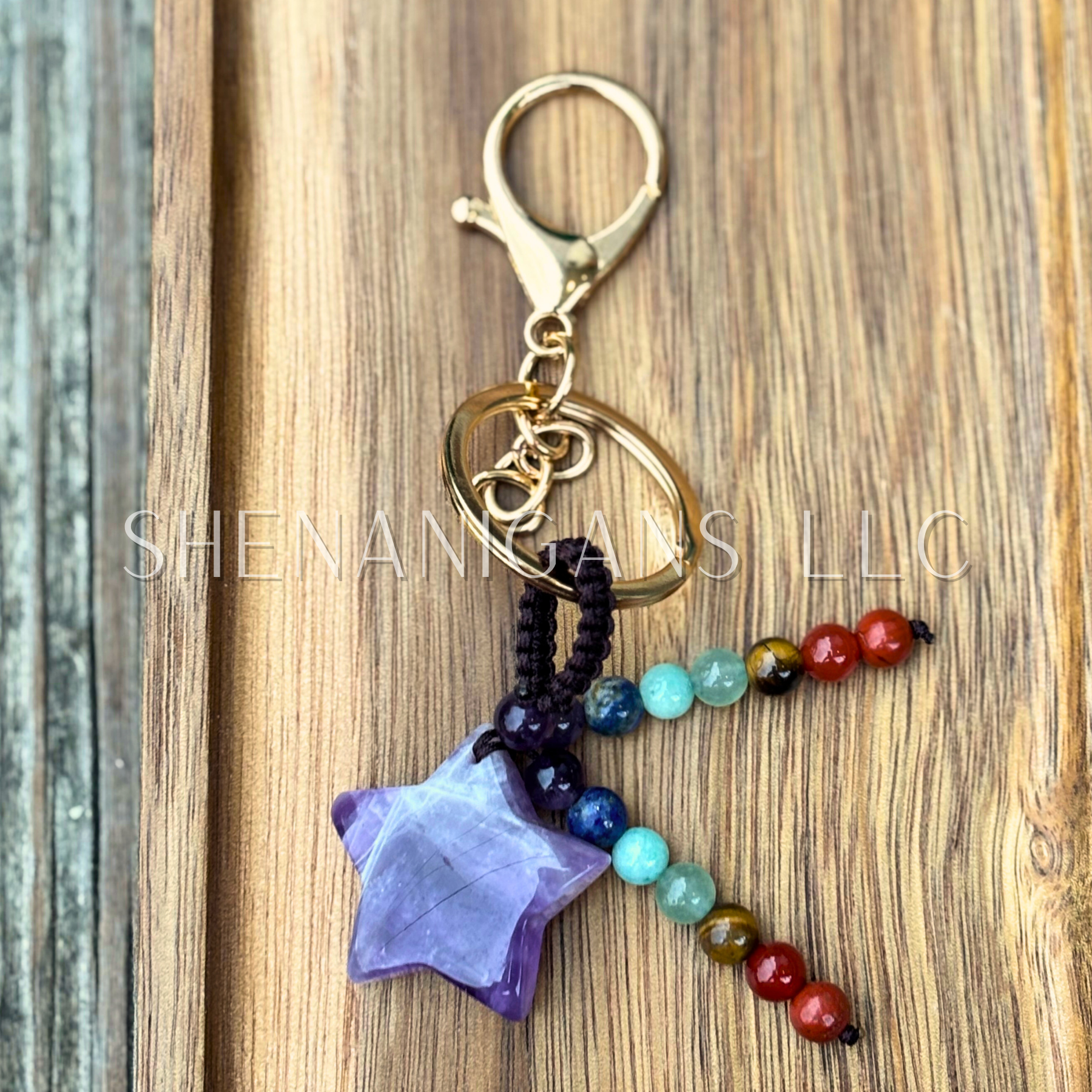 Carry a spark of cosmic energy with you wherever you go. This Star Crystal Keychain features a carved gemstone star—each one unique, radiant, and charged with intention. Whether clipped to your keys, bag, or altar space, this piece brings a subtle celestial touch and energetic support for your daily journey.